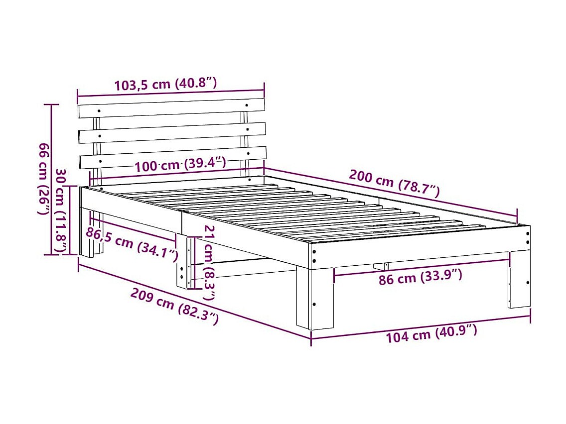 Bettgestell mit Kopfteil Braun 100 x 200 cm Massivholz Kiefer