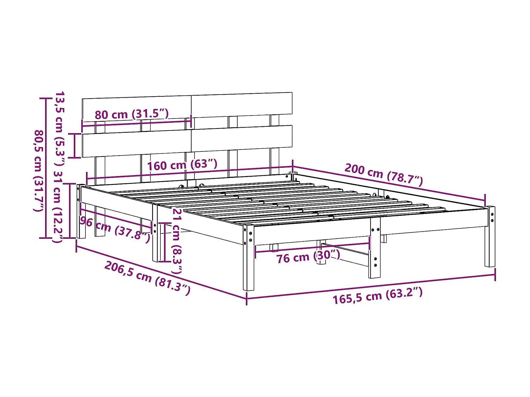Bettgestell mit Kopfteil Braun 160 x 200 cm Massivholz Kiefer