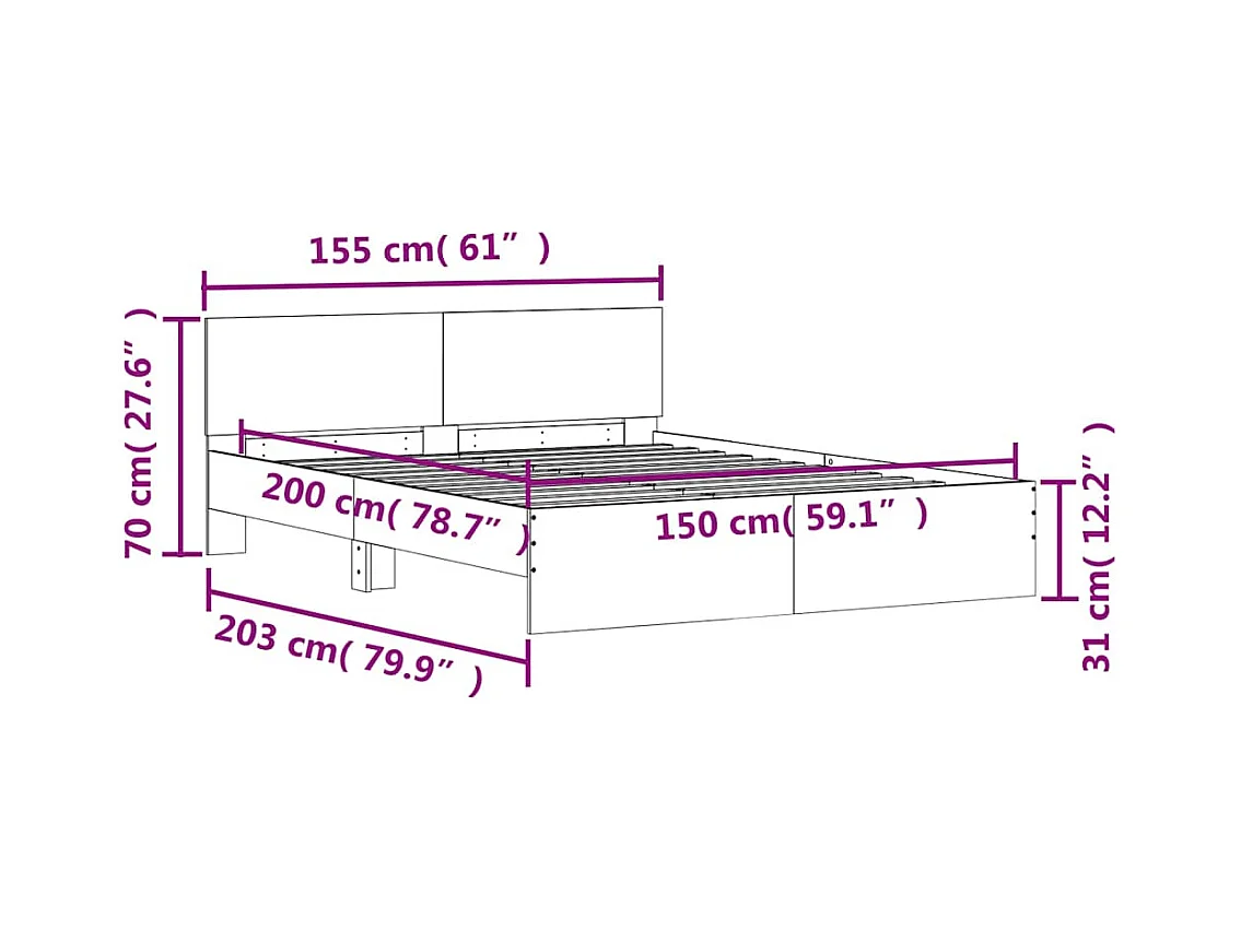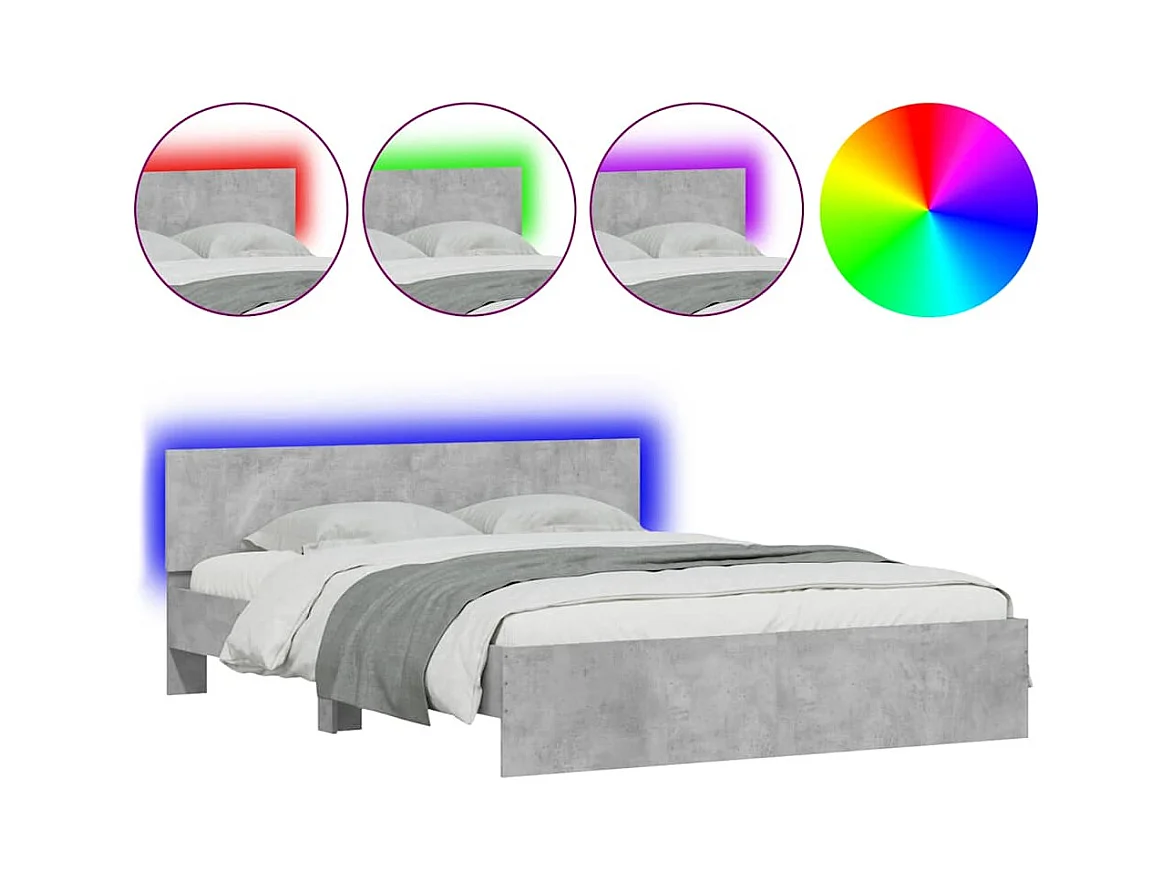Bettgestell mit Kopfteil LED-Beleuchtung Betongrau 150x200 cm