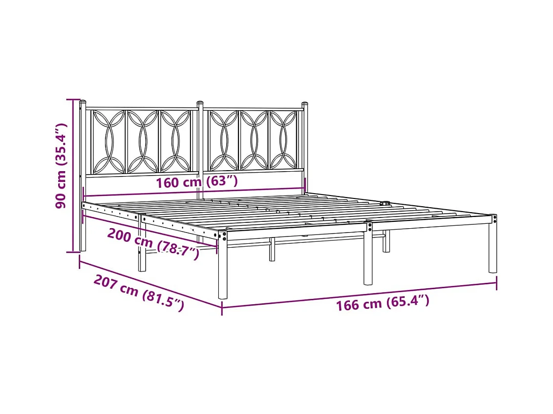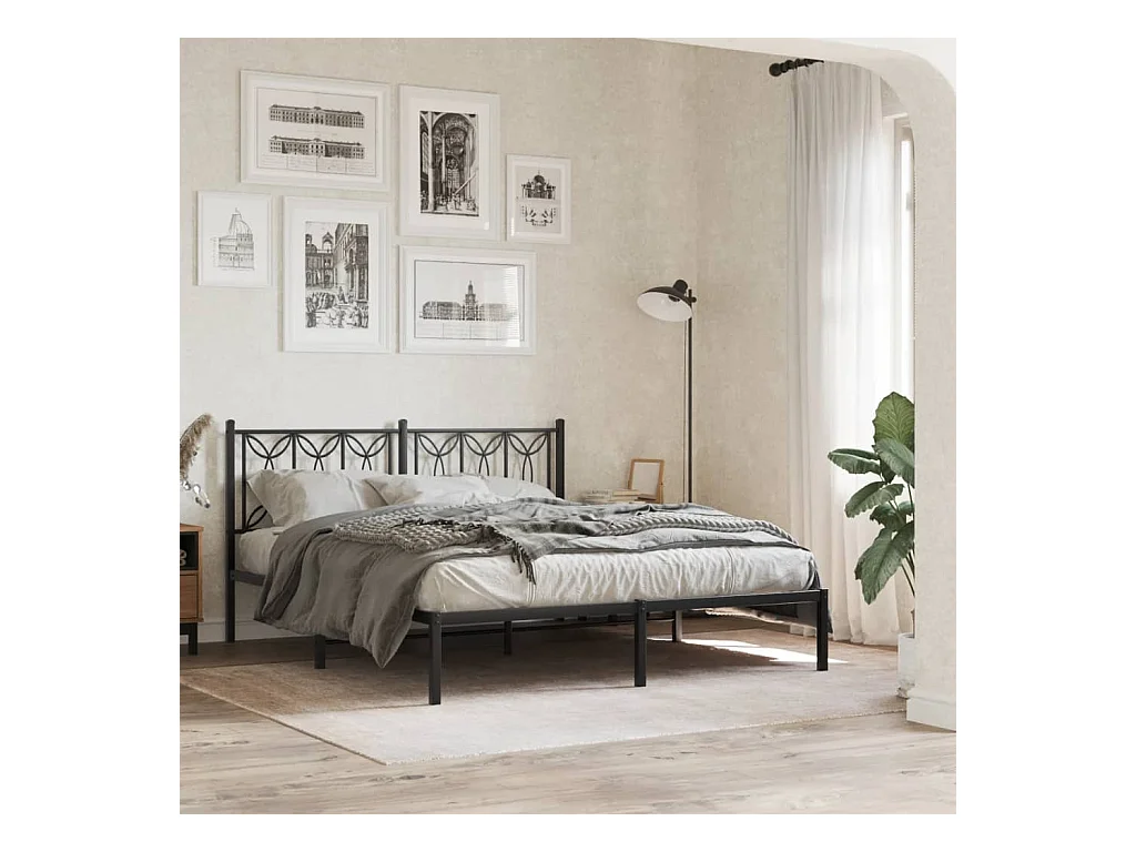 Bettgestell mit Kopfteil Metall Schwarz 160x200 cm
