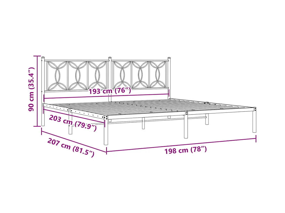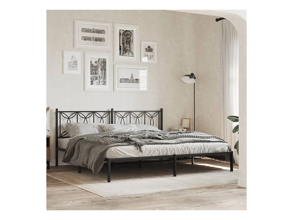 Bettgestell mit Kopfteil Metall Schwarz 193x203 cm