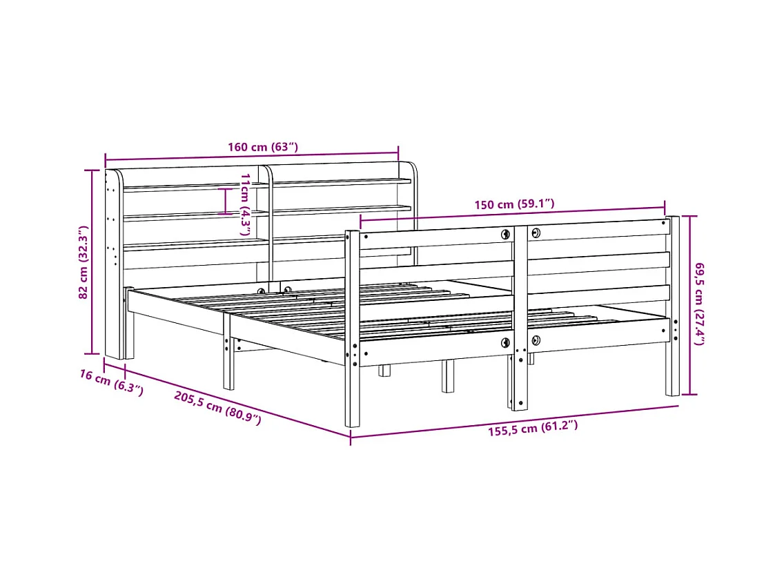 Bettgestell mit Kopfteil ohne Matratze 150x200 cm