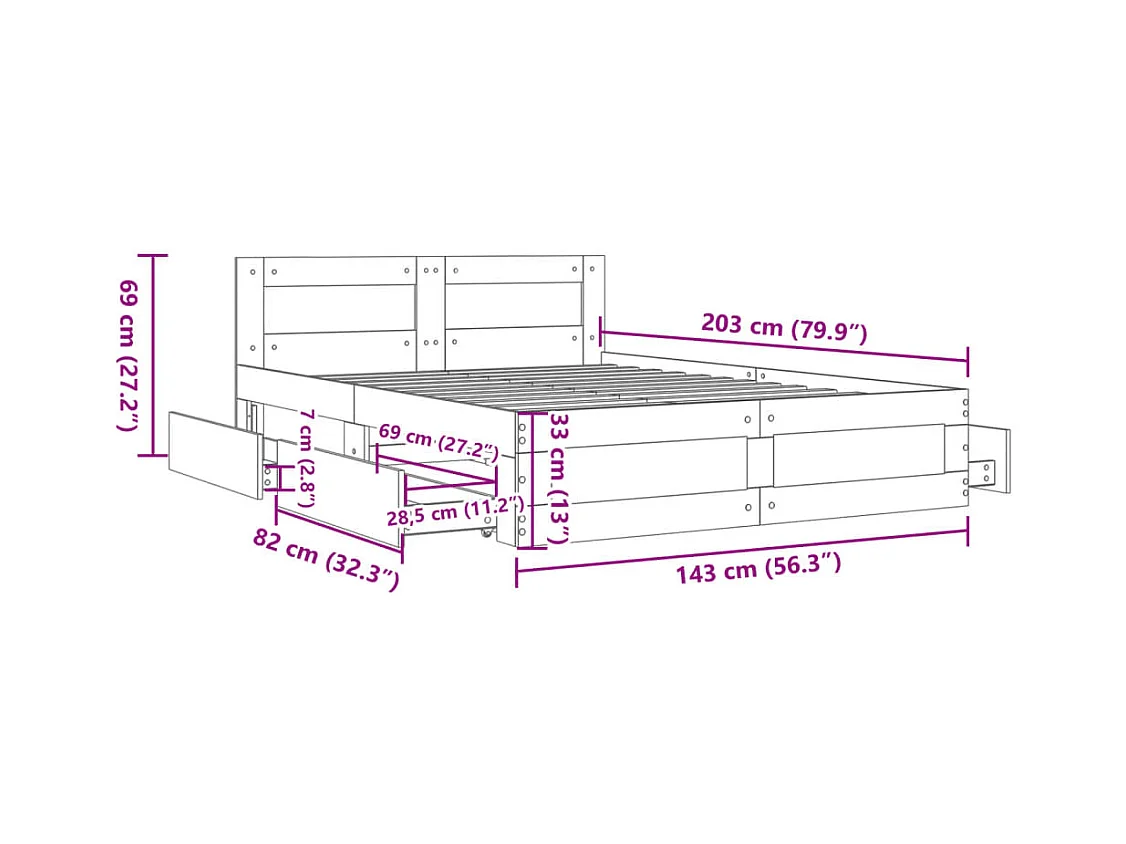 Bettgestell mit Kopfteil ohne Matratze Weiß 140x200 cm