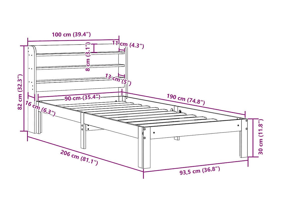 Bettgestell mit Kopfteil ohne Matratze Weiß 90x190 cm