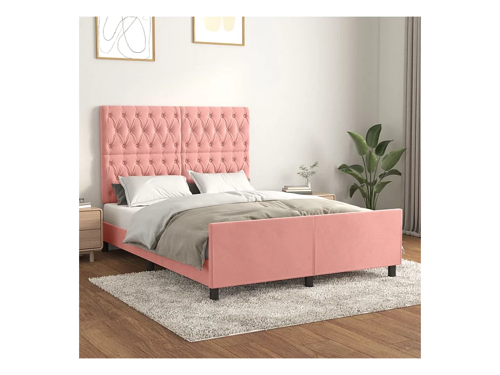 Bettgestell mit Kopfteil Rosa 140x190 cm Samt
