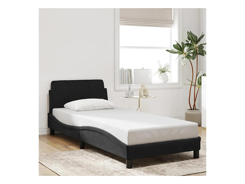 Bettgestell mit Kopfteil "Dover" Schwarz 90x200 cm Samt