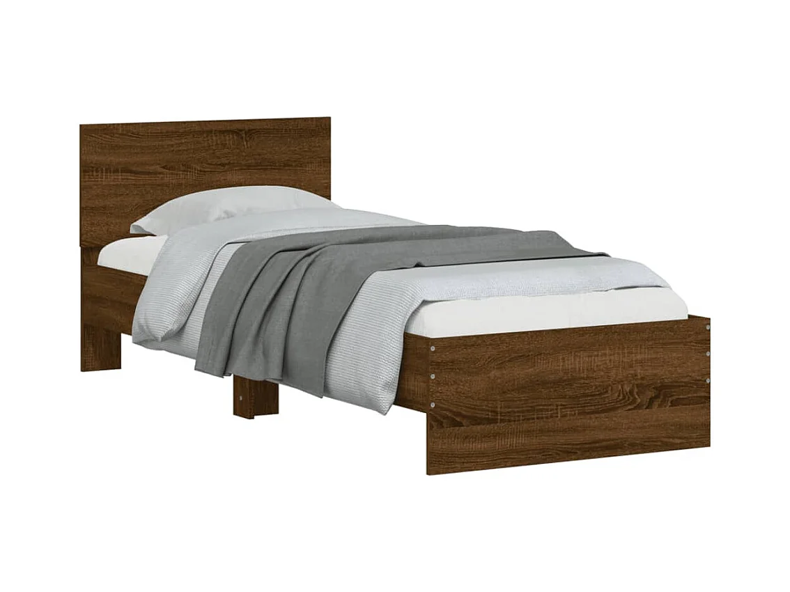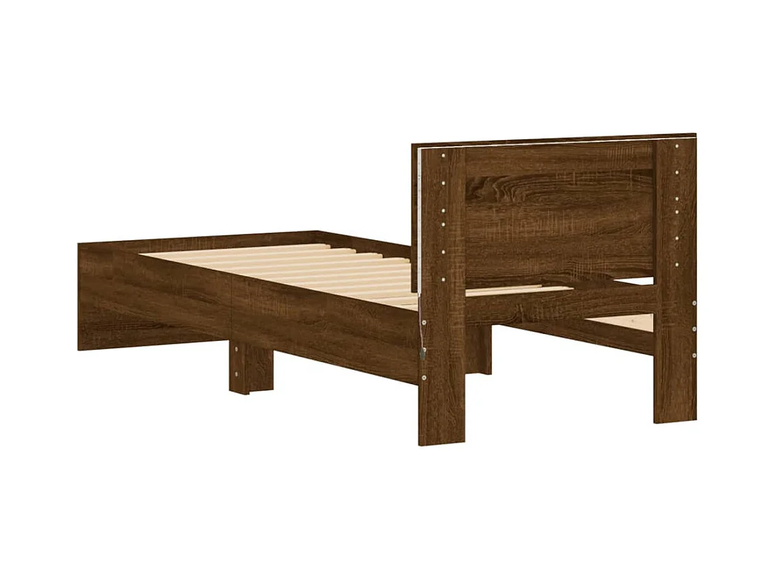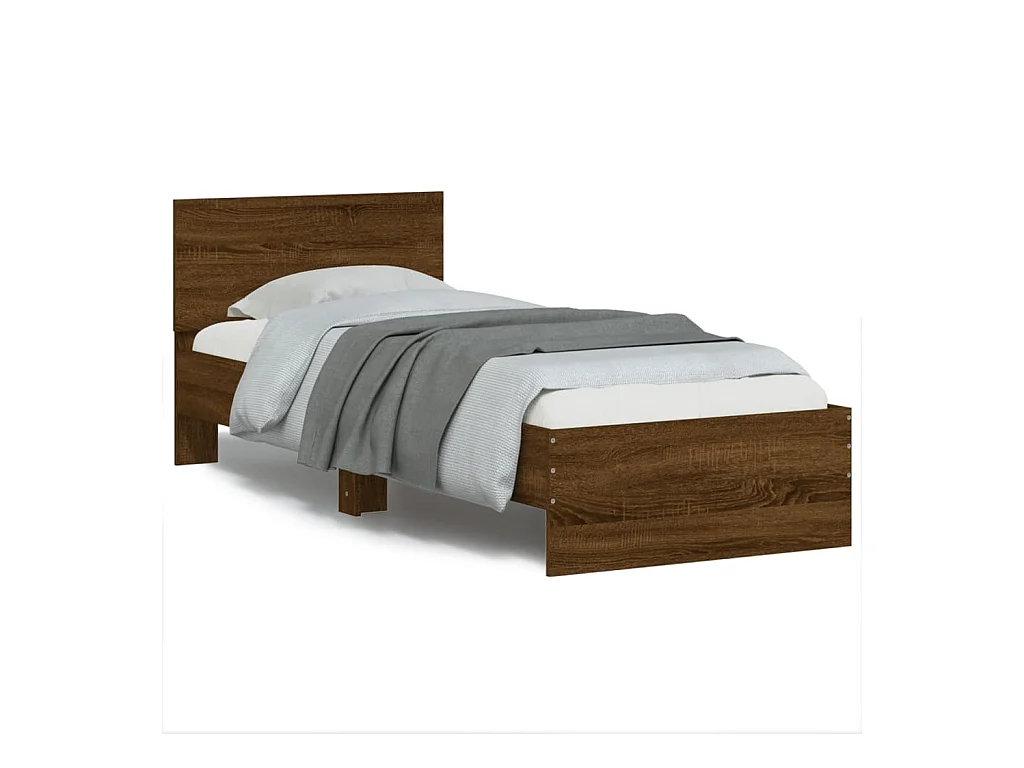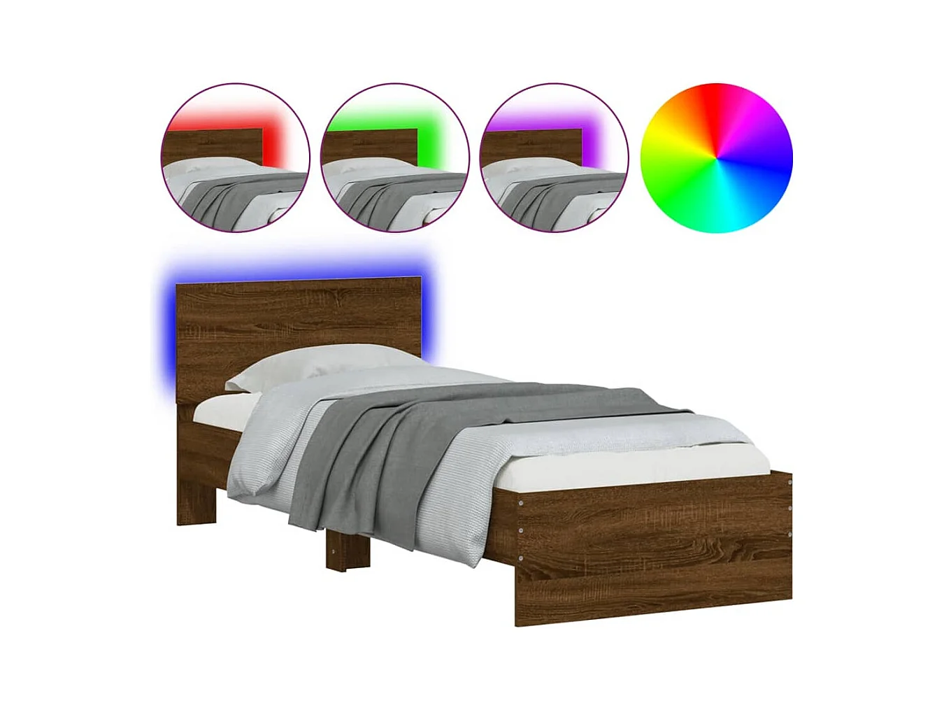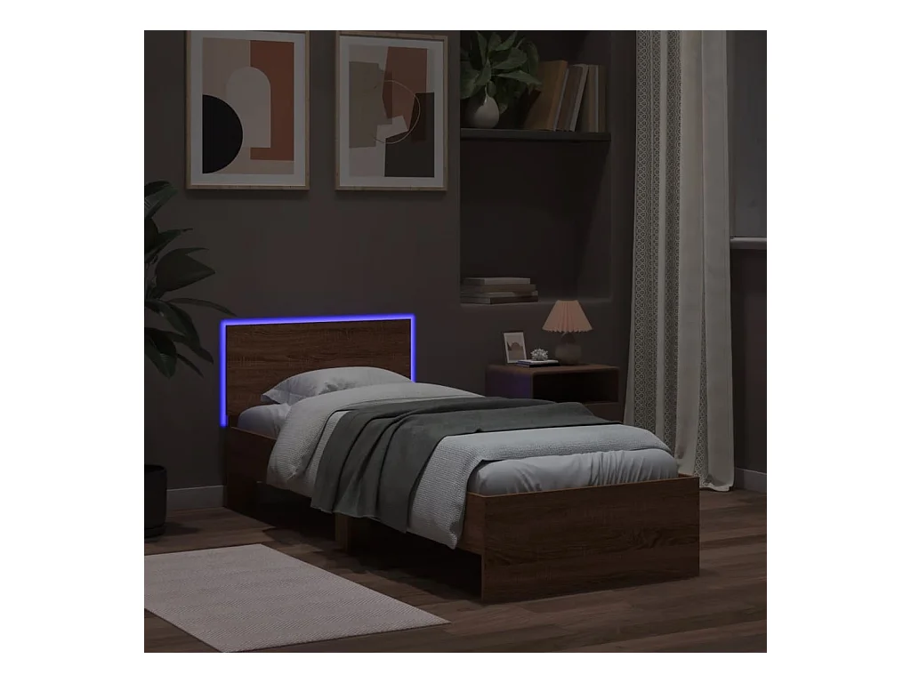 Bettgestell mit Kopfteil und LED-Leuchten Braun Eiche 90x190 cm