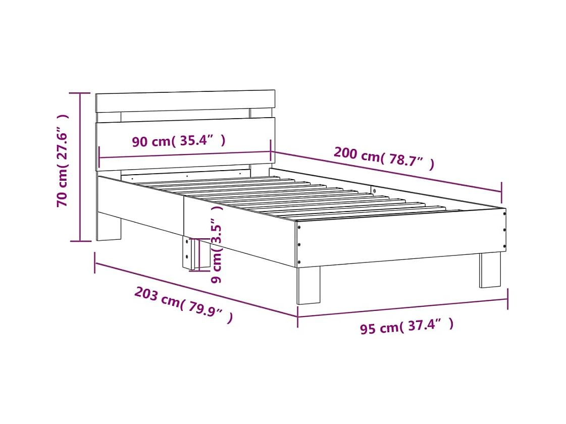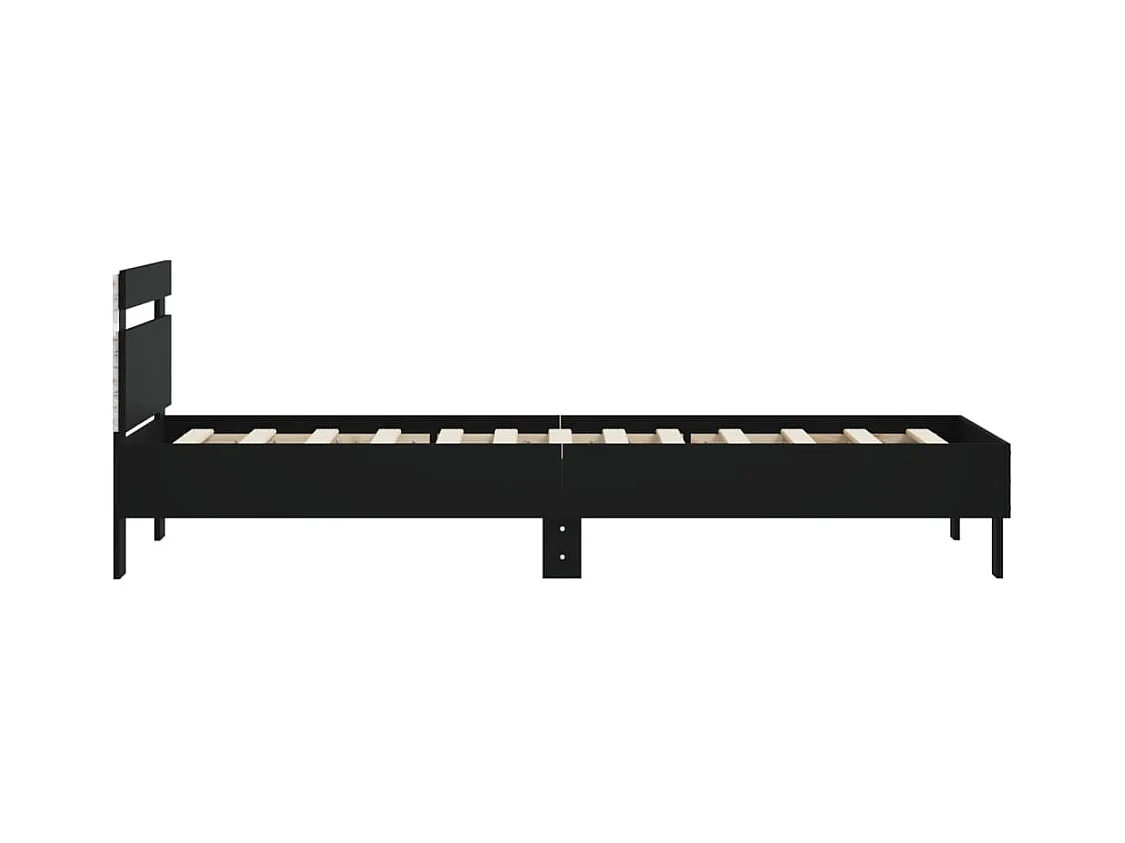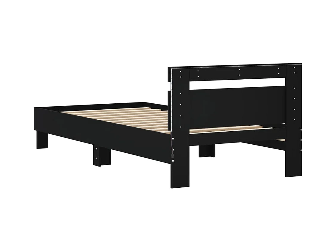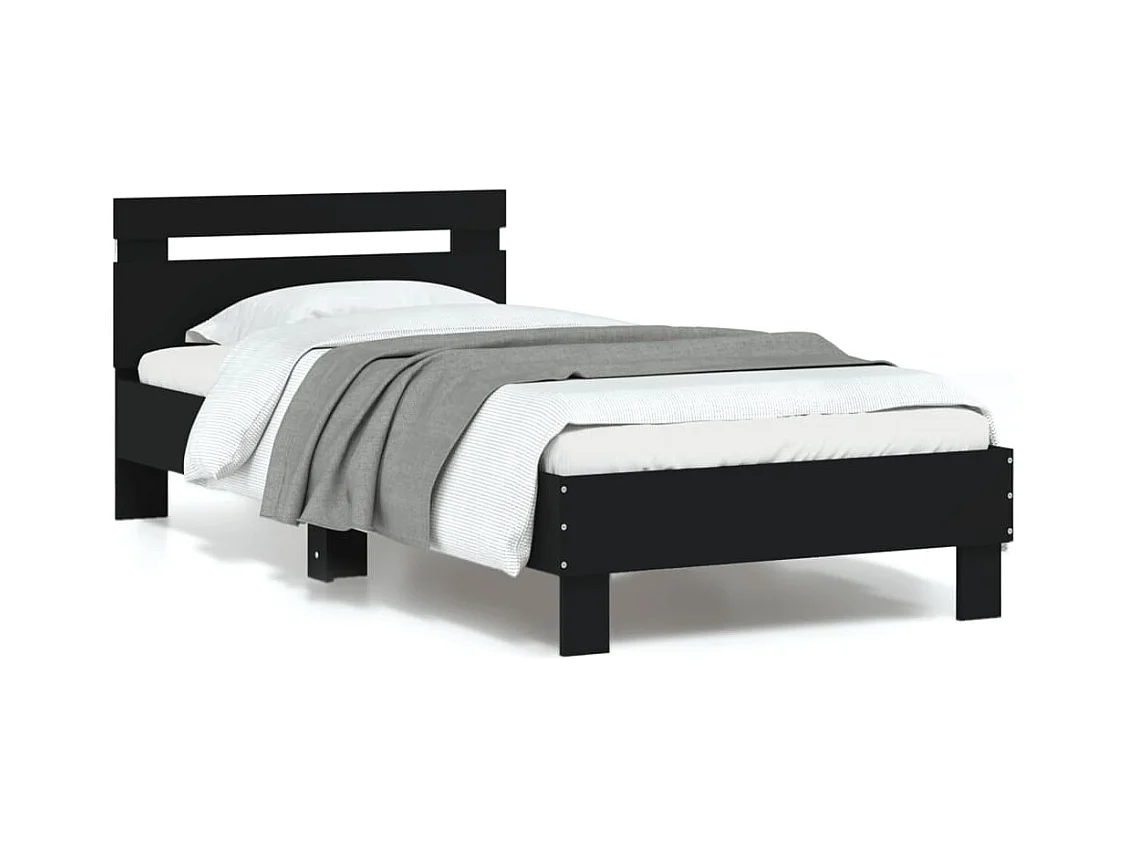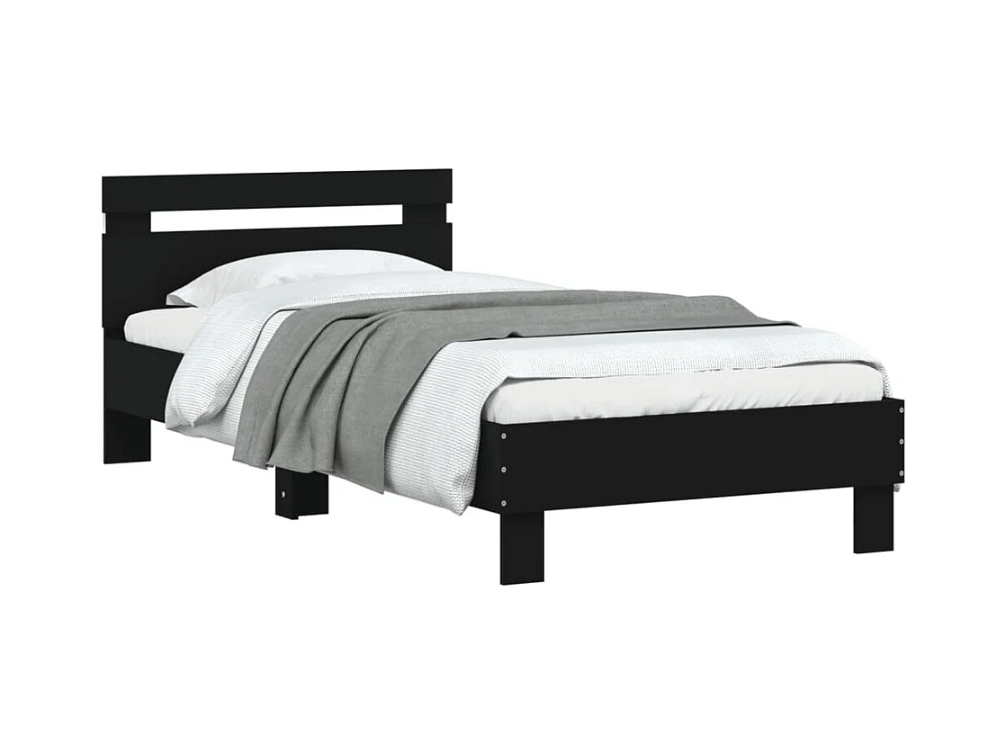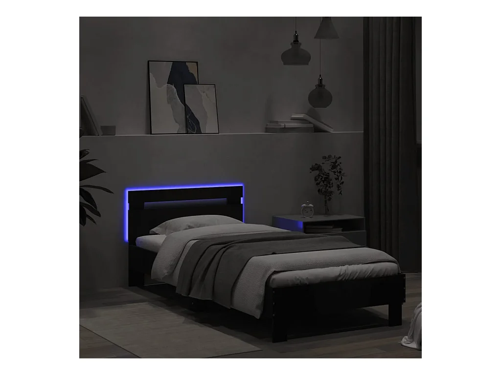 Bettgestell mit Kopfteil und LED-Leuchten Schwarz 90x200 cm
