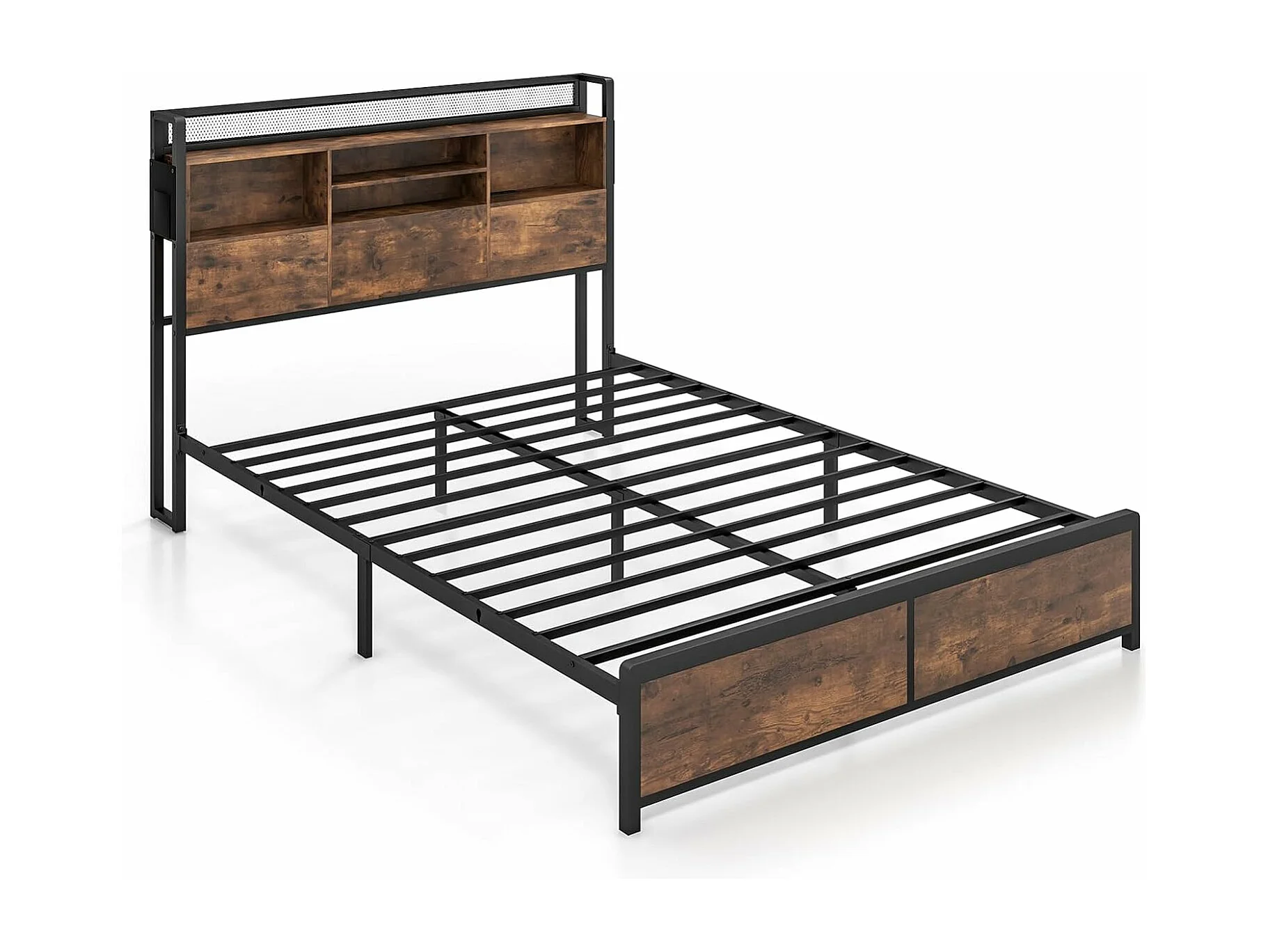 Bettgestell mit Ladestation und Lattenrost, Kopfteil mit Stauraum, ohne Matratze 140x200cm TG32866