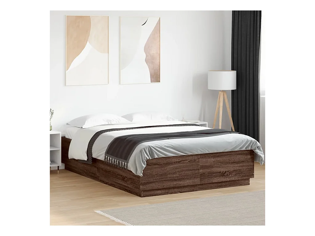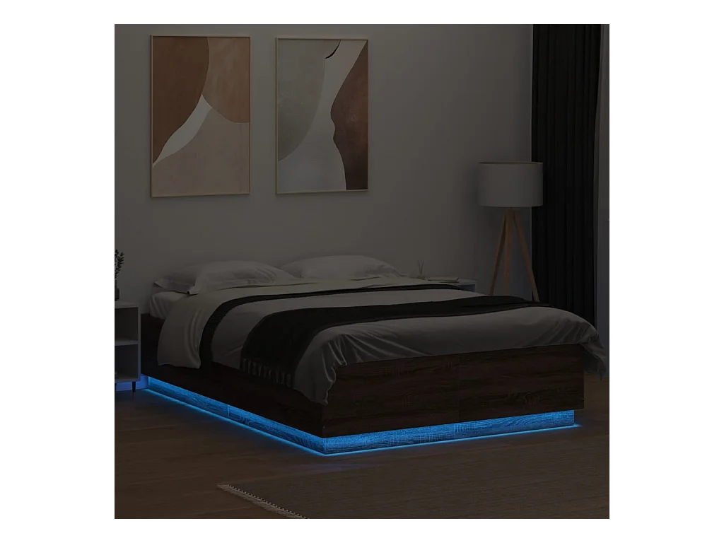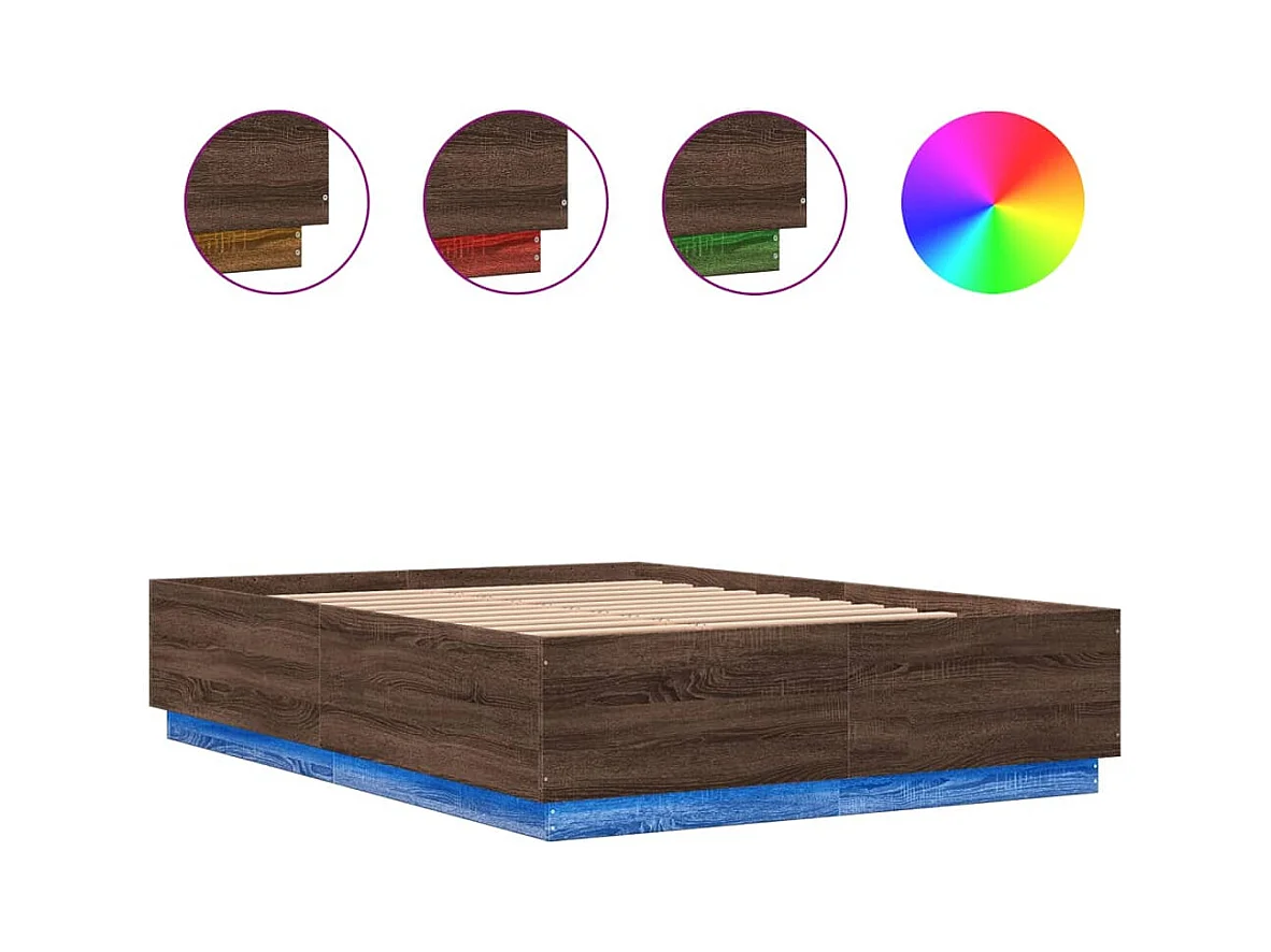 Bettgestell mit LED Braun Eichen-Optik 120x200 cm Holzwerkstoff