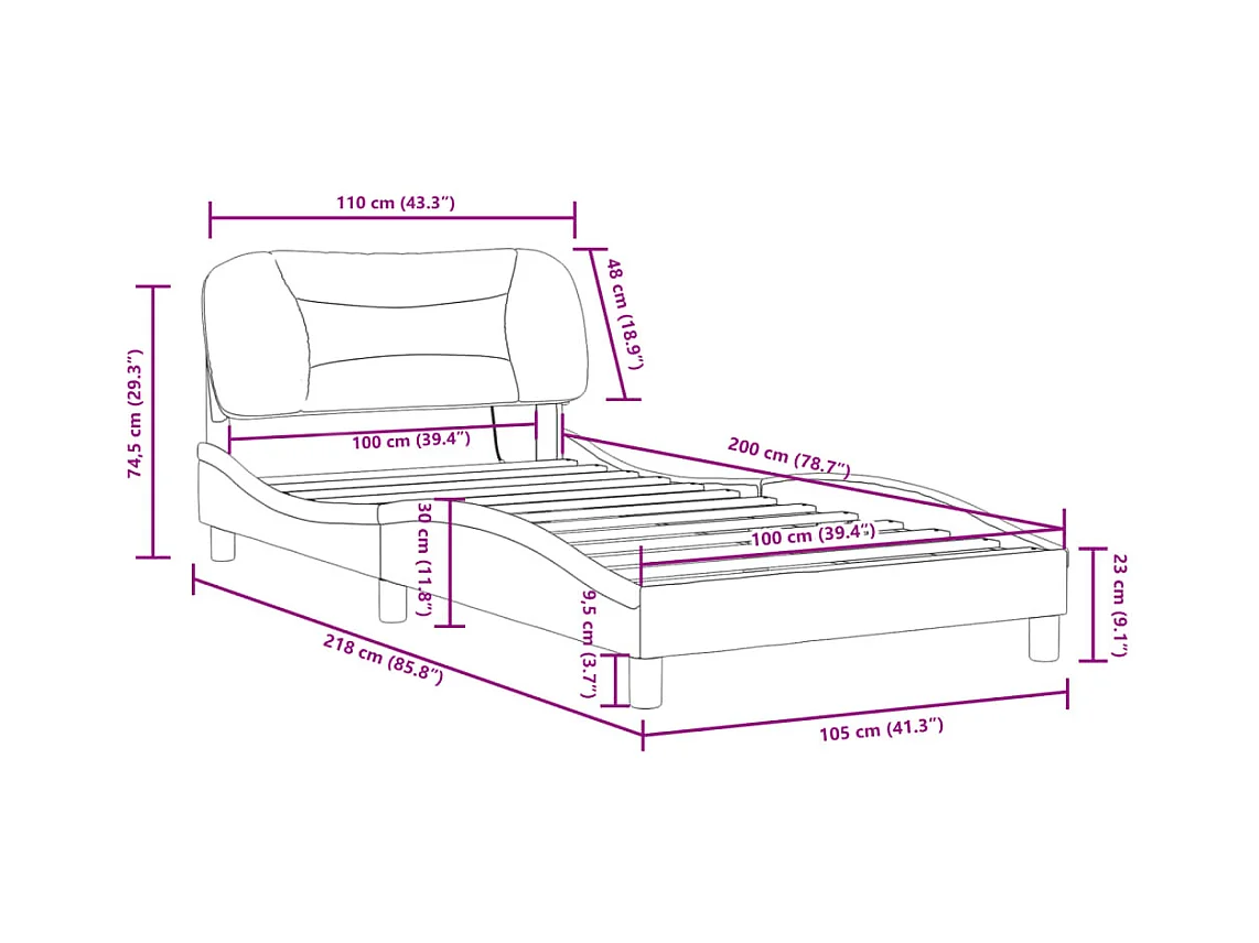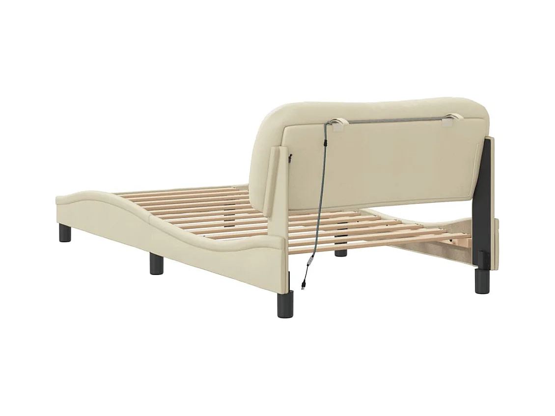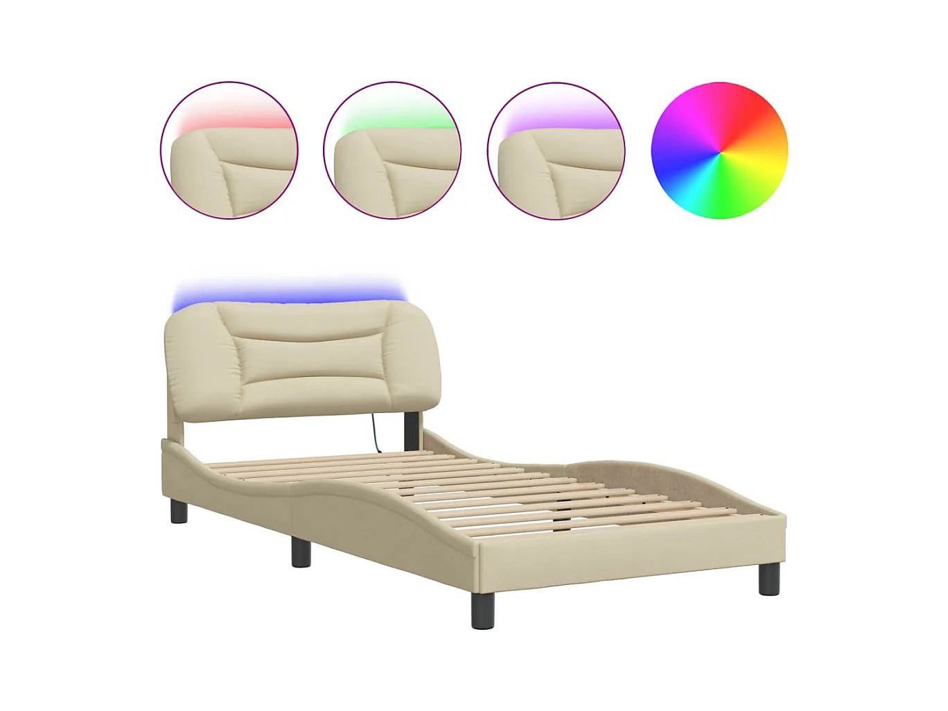 Bettgestell mit LED ohne Matratze "Hvar" Creme 100x200 cm Stoff