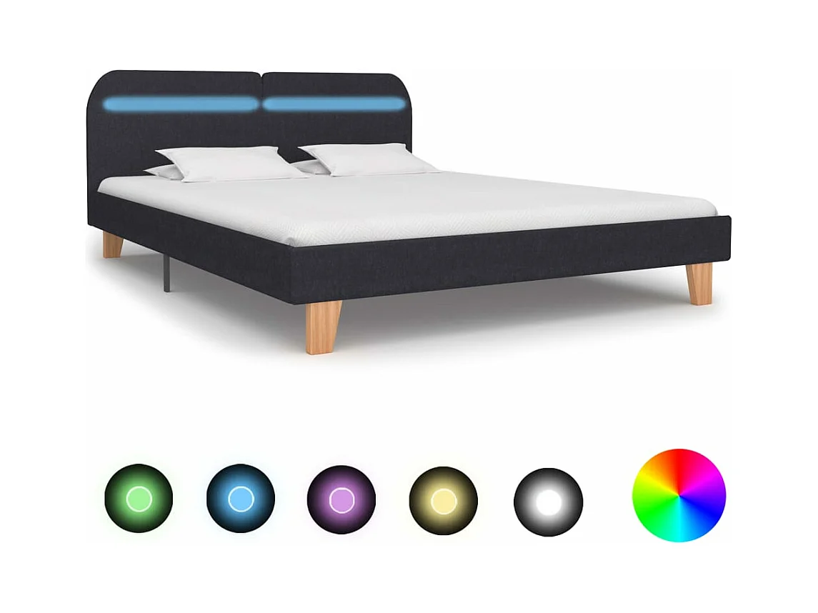 Bettgestell mit LED Dunkelgrau Stoff 180×200 cm