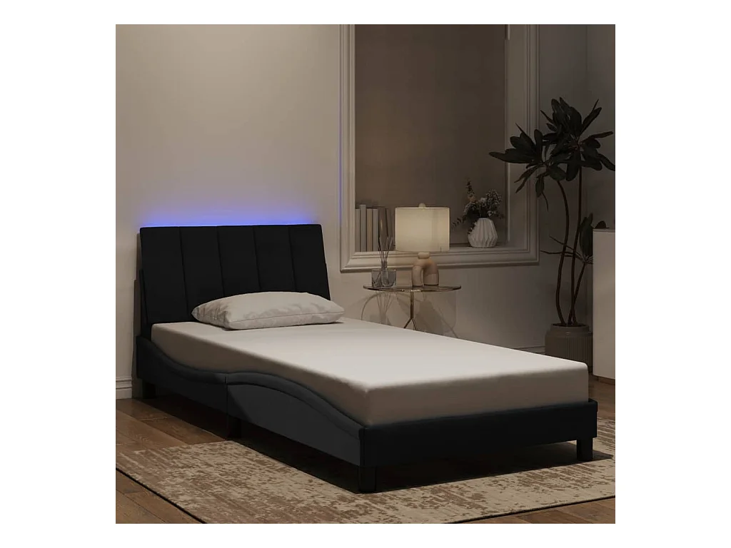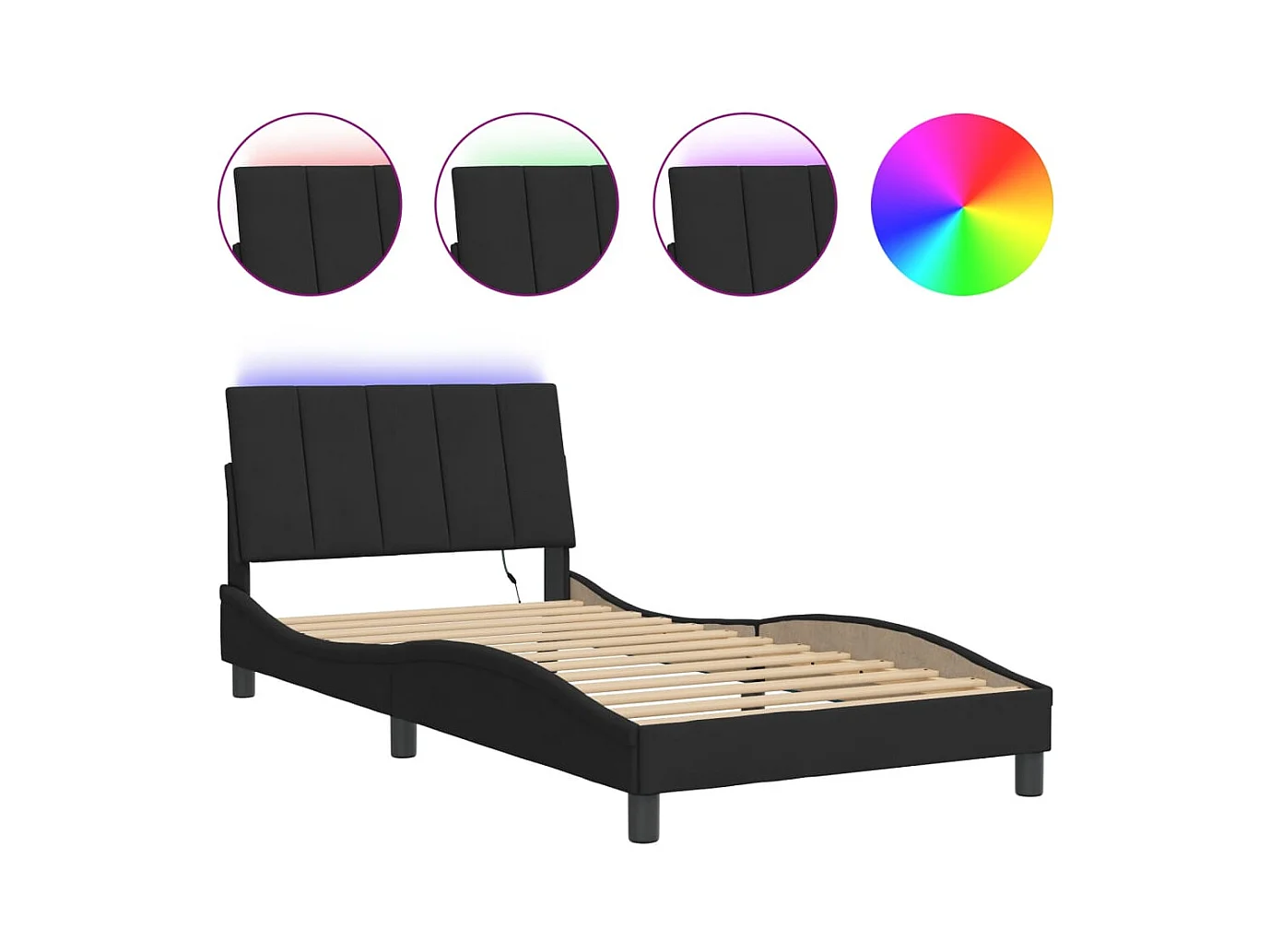 Bettgestell mit LED ohne Matratze "Hanko" Schwarz 100x200 cm Samt