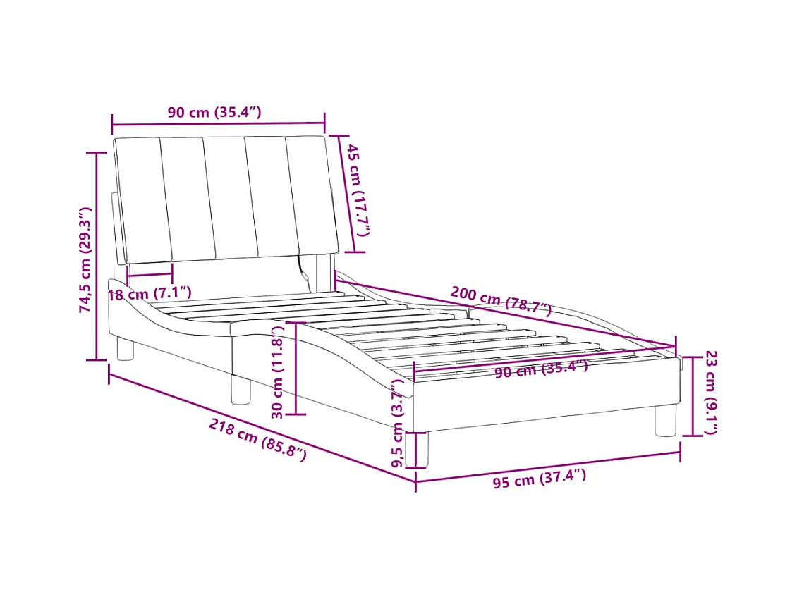 Bettgestell mit LED ohne Matratze "Hanko" Dunkelgrün 90x200 cm Samt