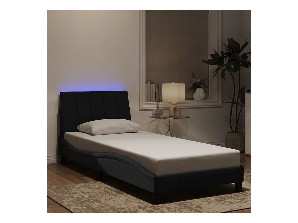 Bettgestell mit LED ohne Matratze "Hanko" Schwarz 80x200 cm Samt