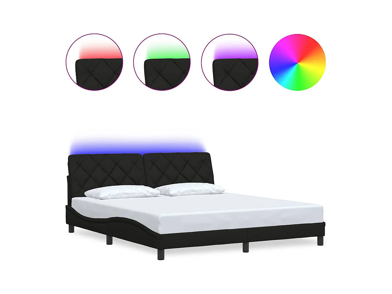 Bettgestell mit LED ohne Matratze Schwarz 180x200 cm Stoff