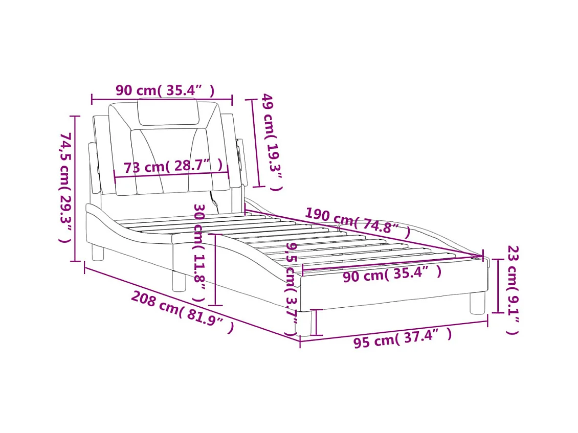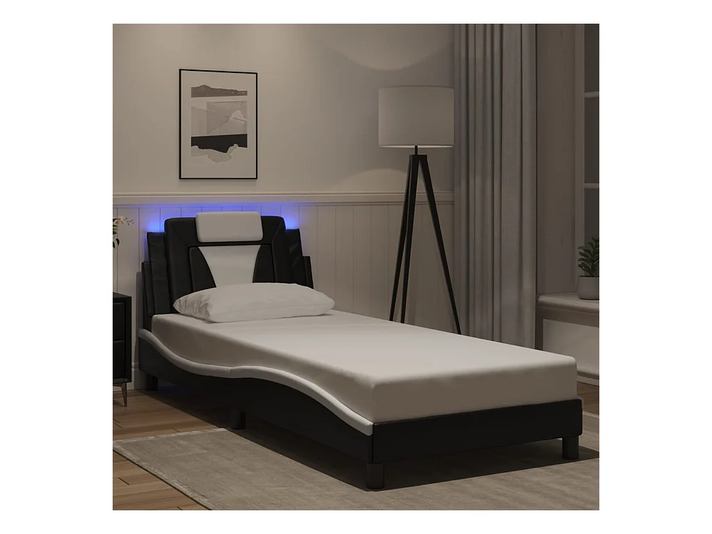Bettgestell "Viana" mit LED ohne Matratze Schwarz und Weiß 90x190 cm