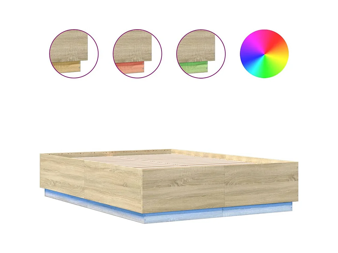 Bettgestell mit LED Sonoma-Eiche 140x200 cm Holzwerkstoff