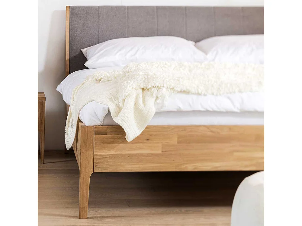 Bettgestell mit Polster Kopfteil in Wildeiche Honigfarben Massivholz