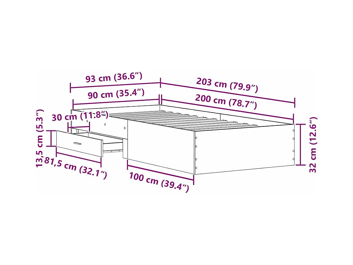 Bettgestell mit Schubladen Altholz 90 x 200 cm Holzwerkstoff