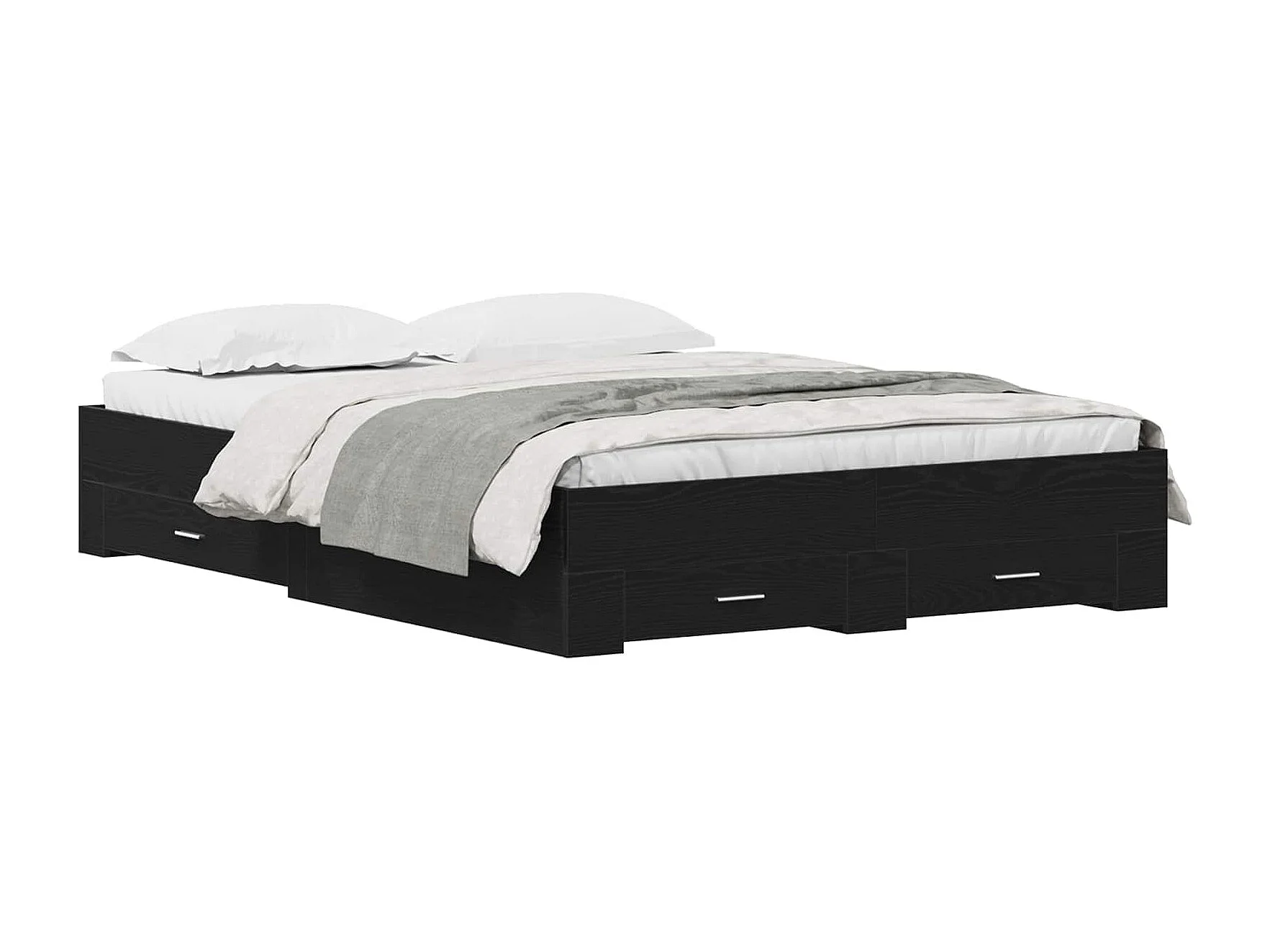 Bettrahmen Schwarz Eichen-Optik 140 x 190 cm Holzwerkstoff