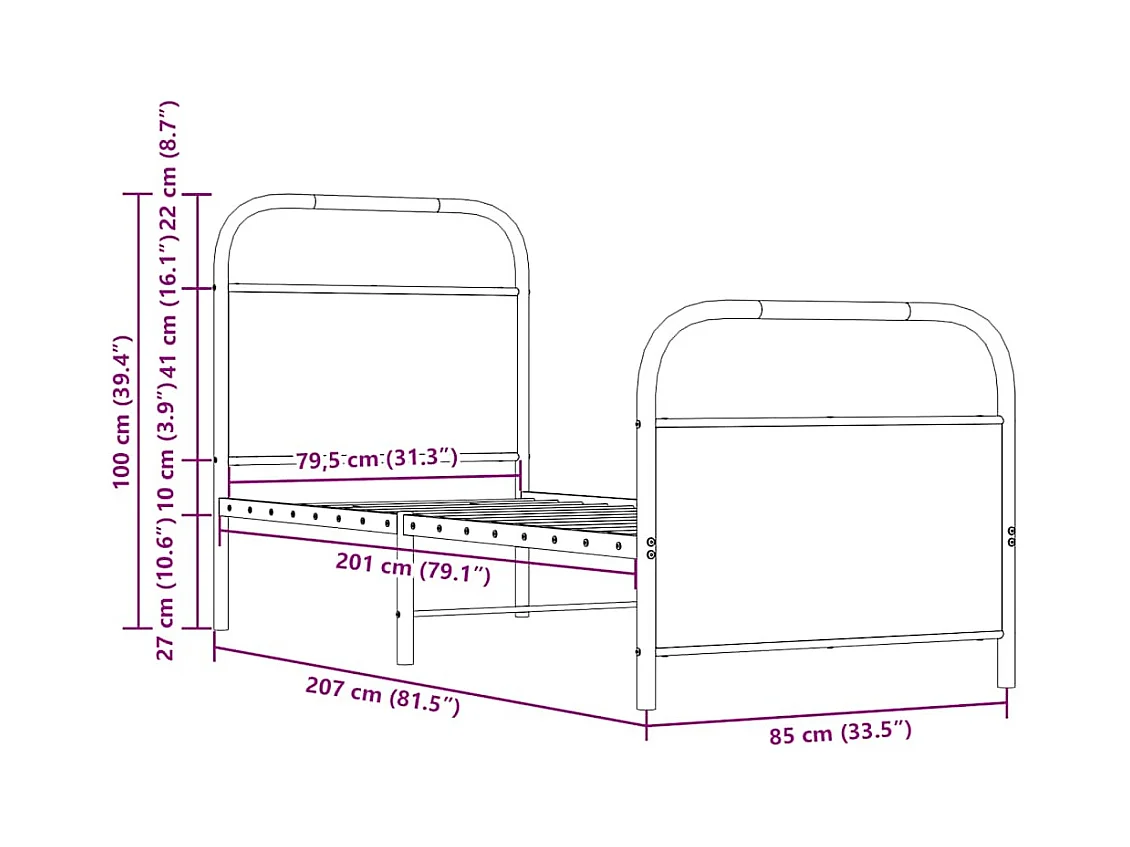 Bettgestell ohne Matratze 80x200 cm Braun Eichen-Optik