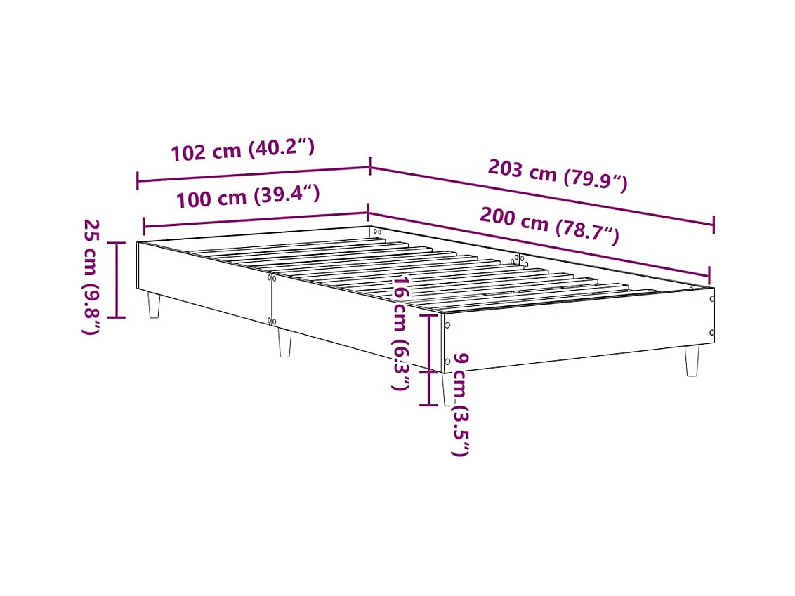 Bettgestell ohne Matratze Betongrau 100x200 cm Holzwerkstoff