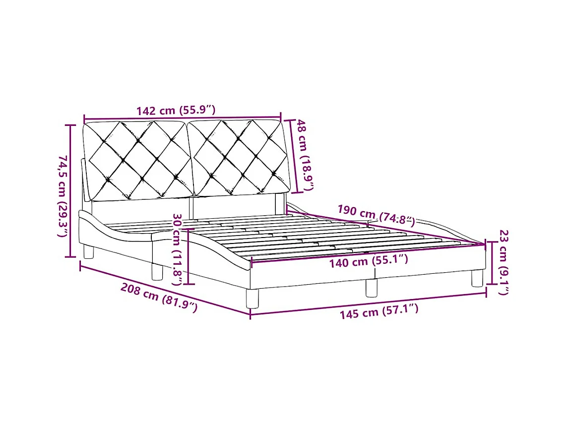 Bettgestell ohne Matratze Dunkelgrau 140x190 cm Stoff