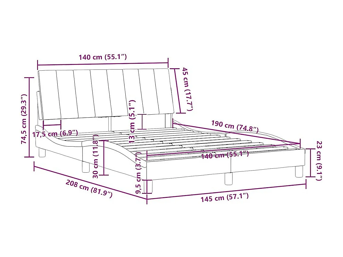 Bettgestell ohne Matratze "Hanko" Blau 140x190 cm Samt