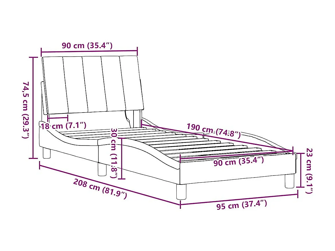 Bettgestell ohne Matratze "Hanko" Dunkelgrau 90x190 cm Stoff