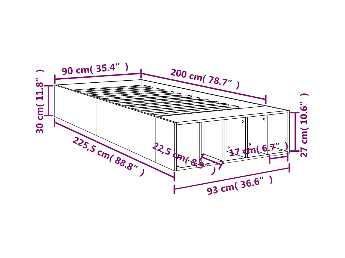 Bettgestell Sonoma-Eiche 90x200 cm Holzwerkstoff