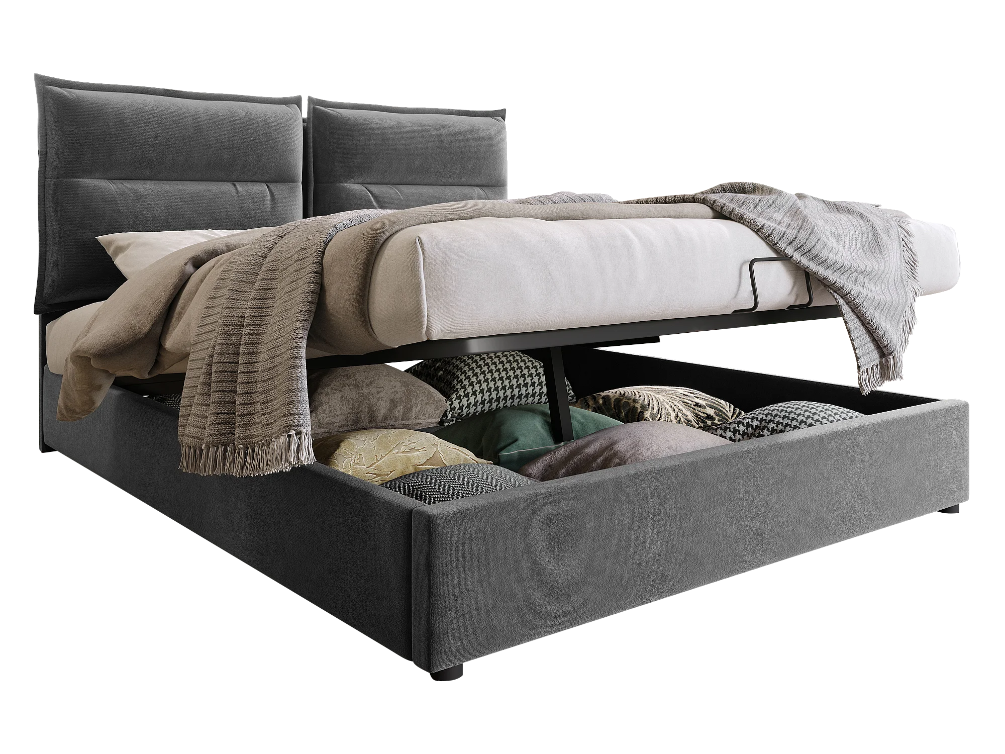 Samtgepolstertes Stauraumbett 140 x 200 cm mit verstellbarem Kopfteil und Lattenrost – Grau