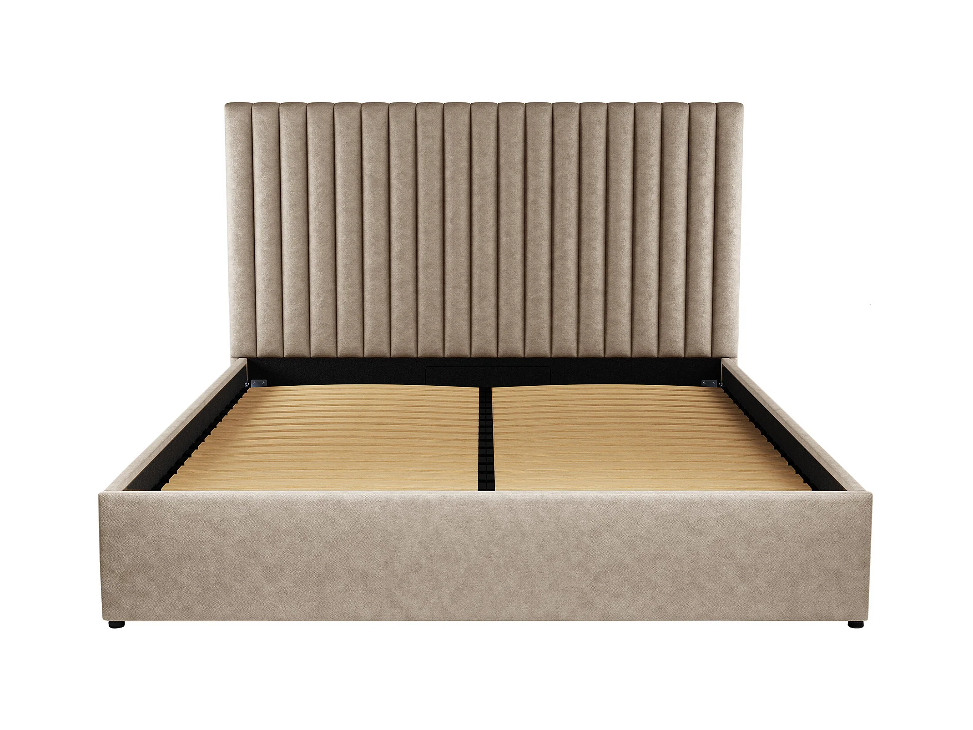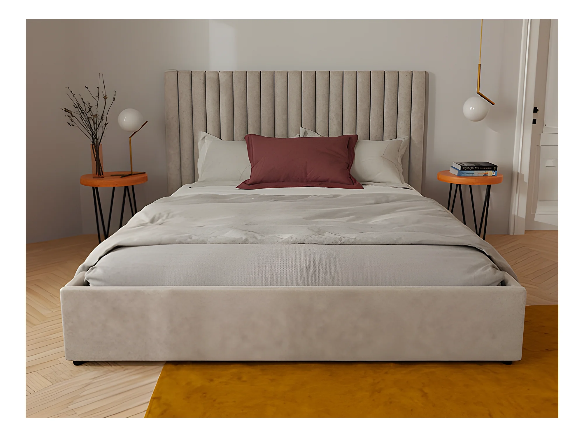 Bett mit Bettkasten - 180 x 200 cm mit Kopfteil mit vertikalen Ziernähten + Matratze - Stoff - Beige - SARAH