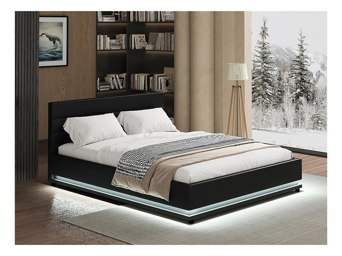 Bett mit LED und Bettkasten "Anastasia" - 160 x 200 cm - Schwarz
