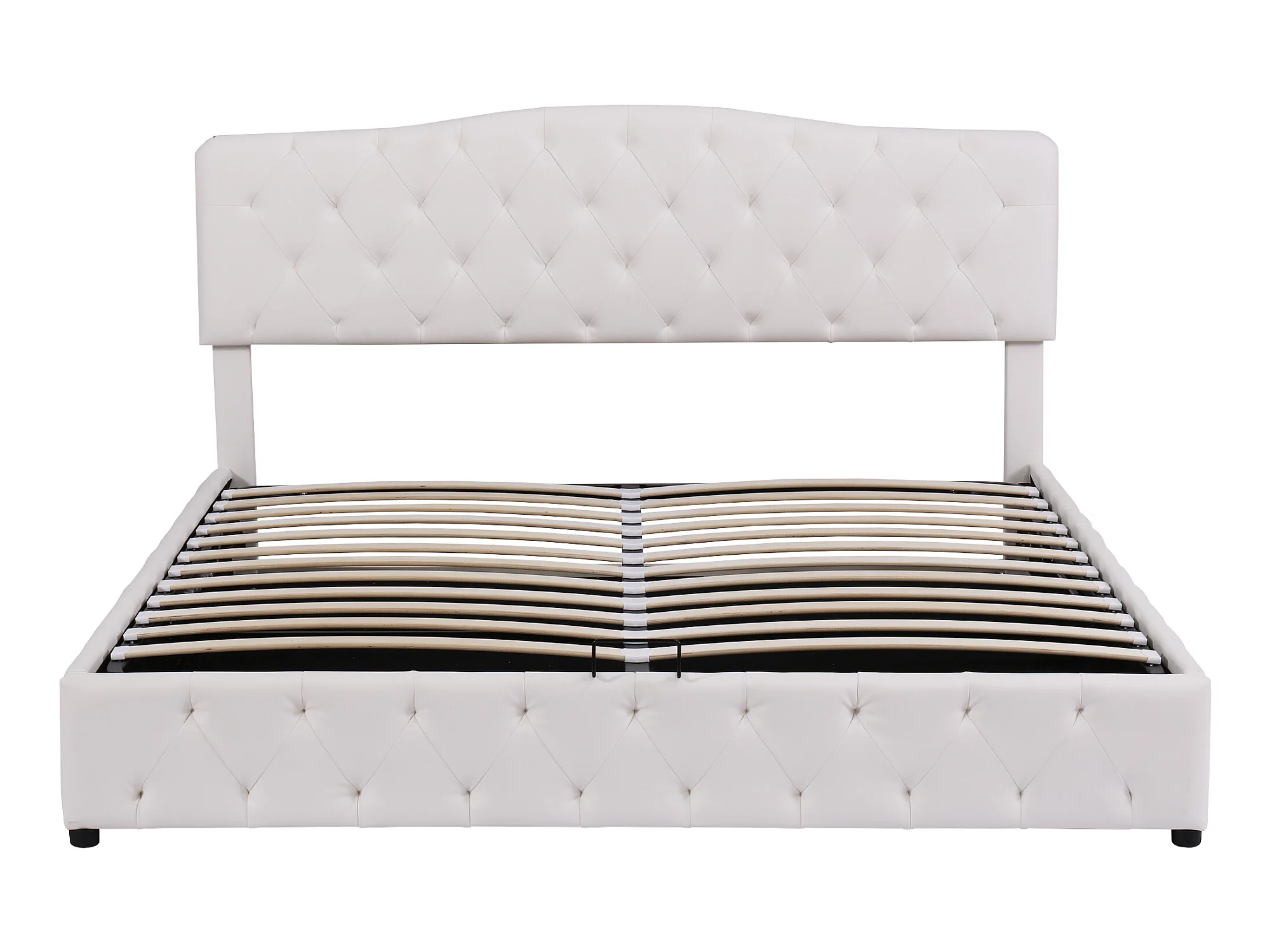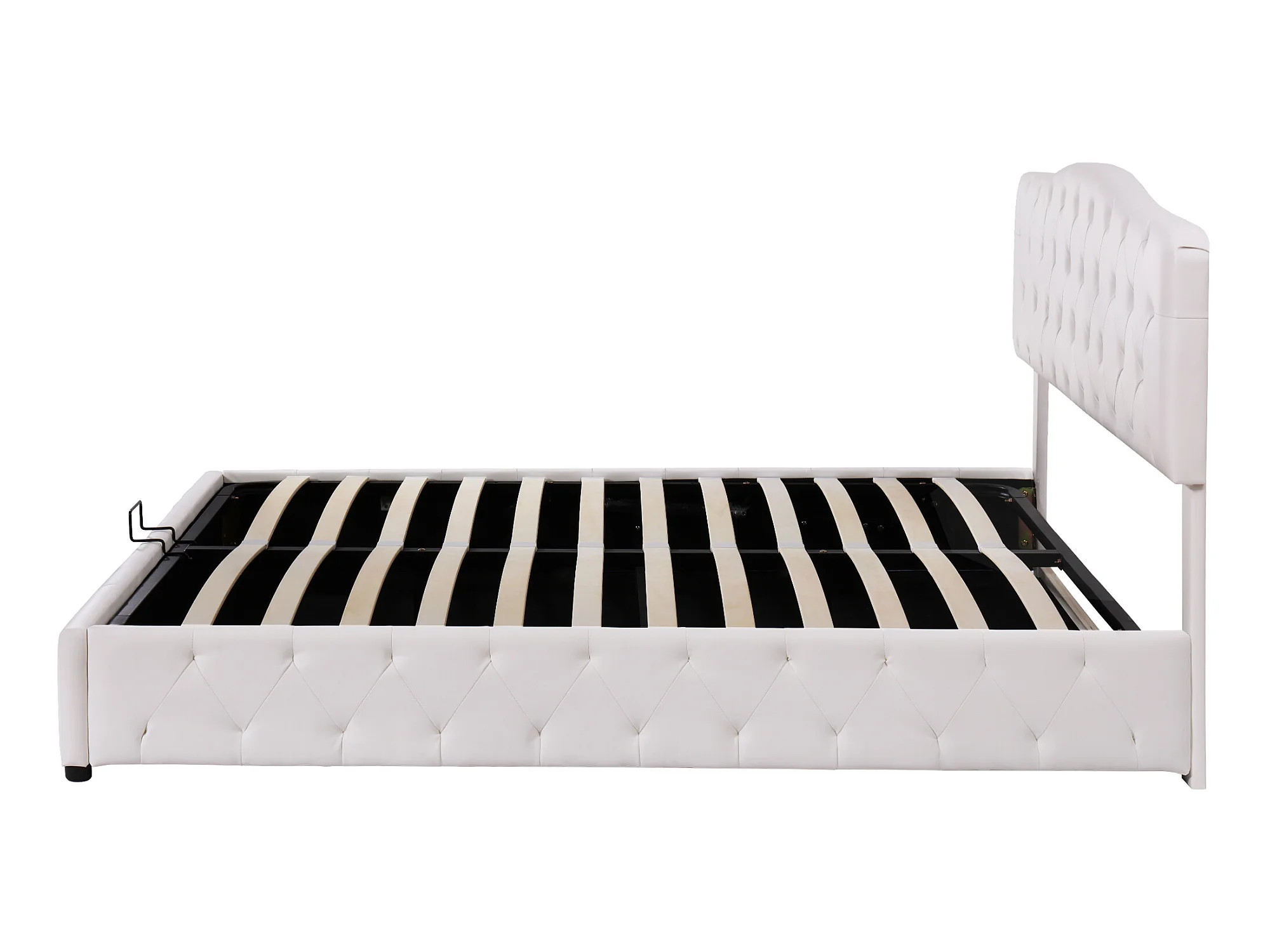 Bettkasten mit verstellbarem Kopfteil – 180 x 200 cm – Kunstleder – LED – Lattenrost – moderner Stil – Weiß