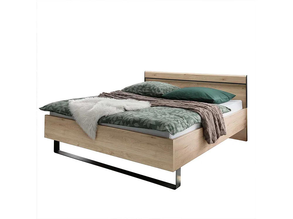 Bettrahmen in Eichefarben und Dunkelgrau LED Beleuchtung
