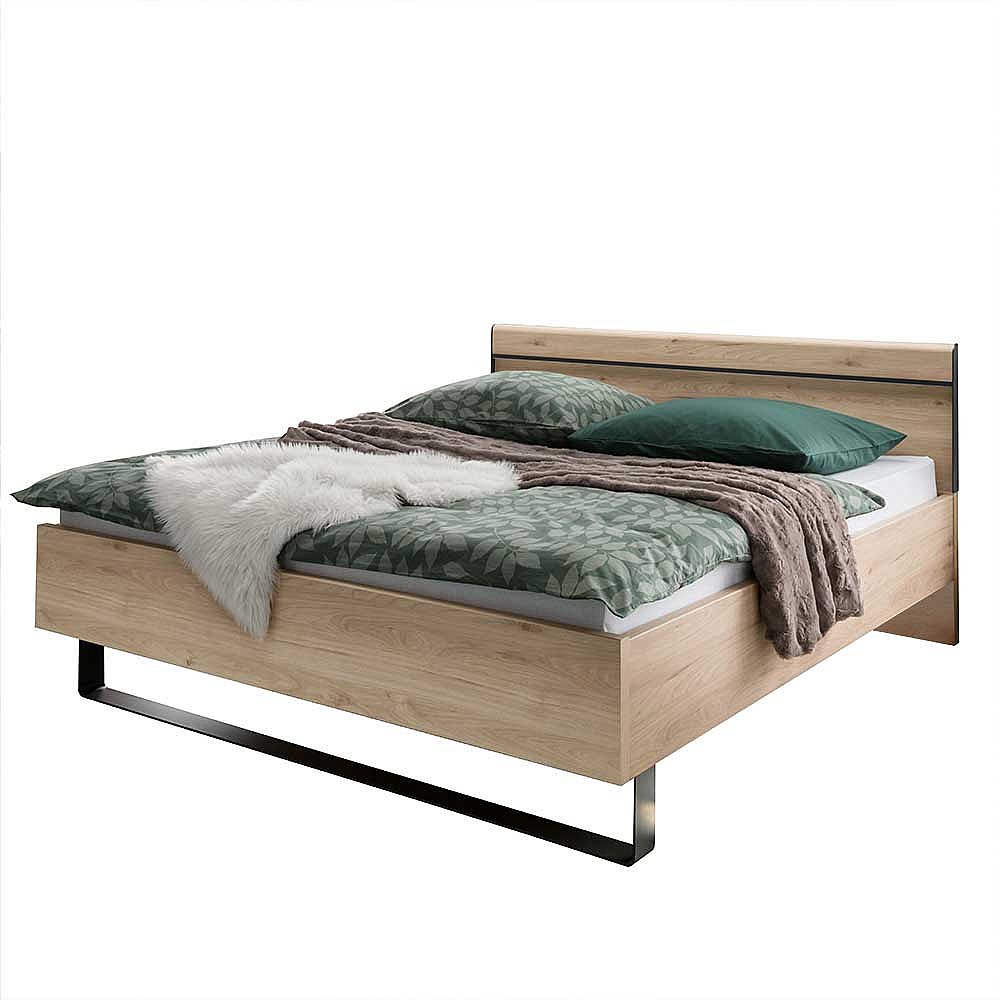 Bettrahmen in Eichefarben und Dunkelgrau LED Beleuchtung