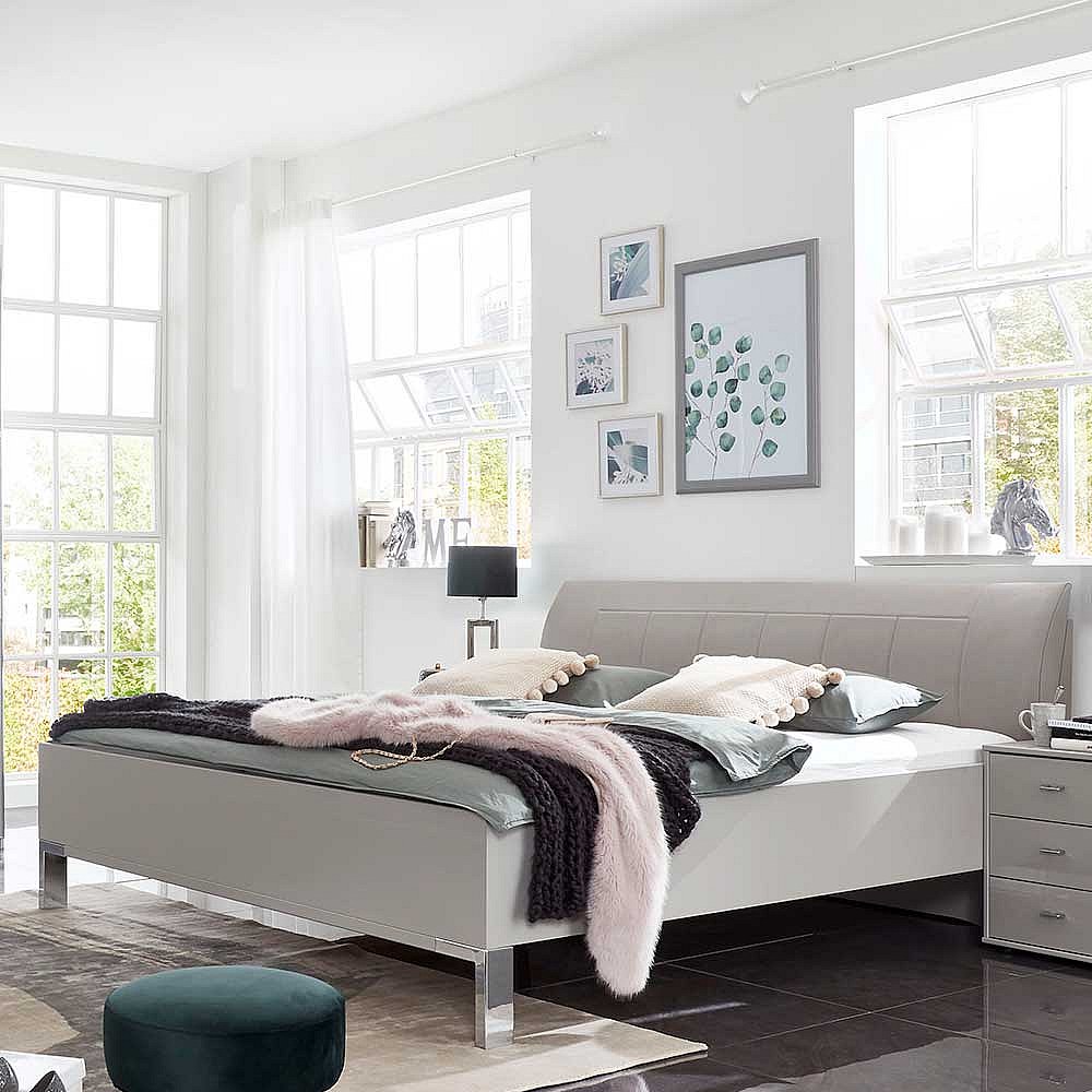 Bettrahmen in Hellgrau Polsterkopfteil