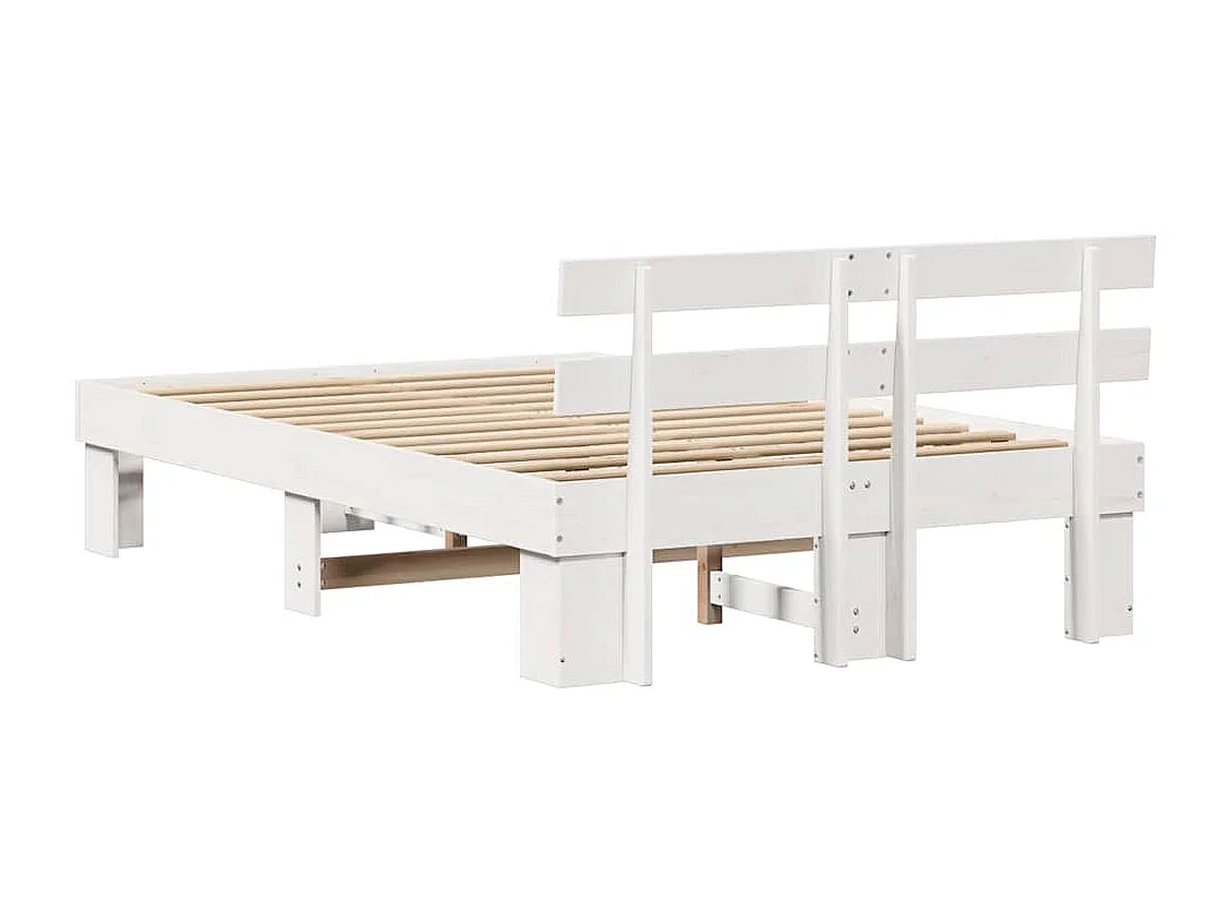Bettrahmen mit Kopfteil Weiß 135 x 190 cm Massives Kiefernholz