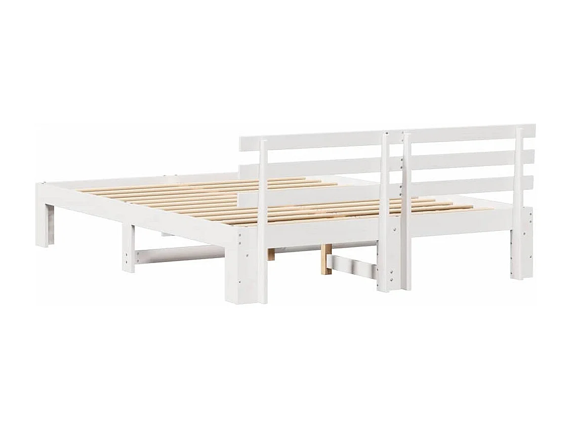 Bettrahmen mit Kopfteil Weiß 150 x 200 cm Massives Kiefernholz