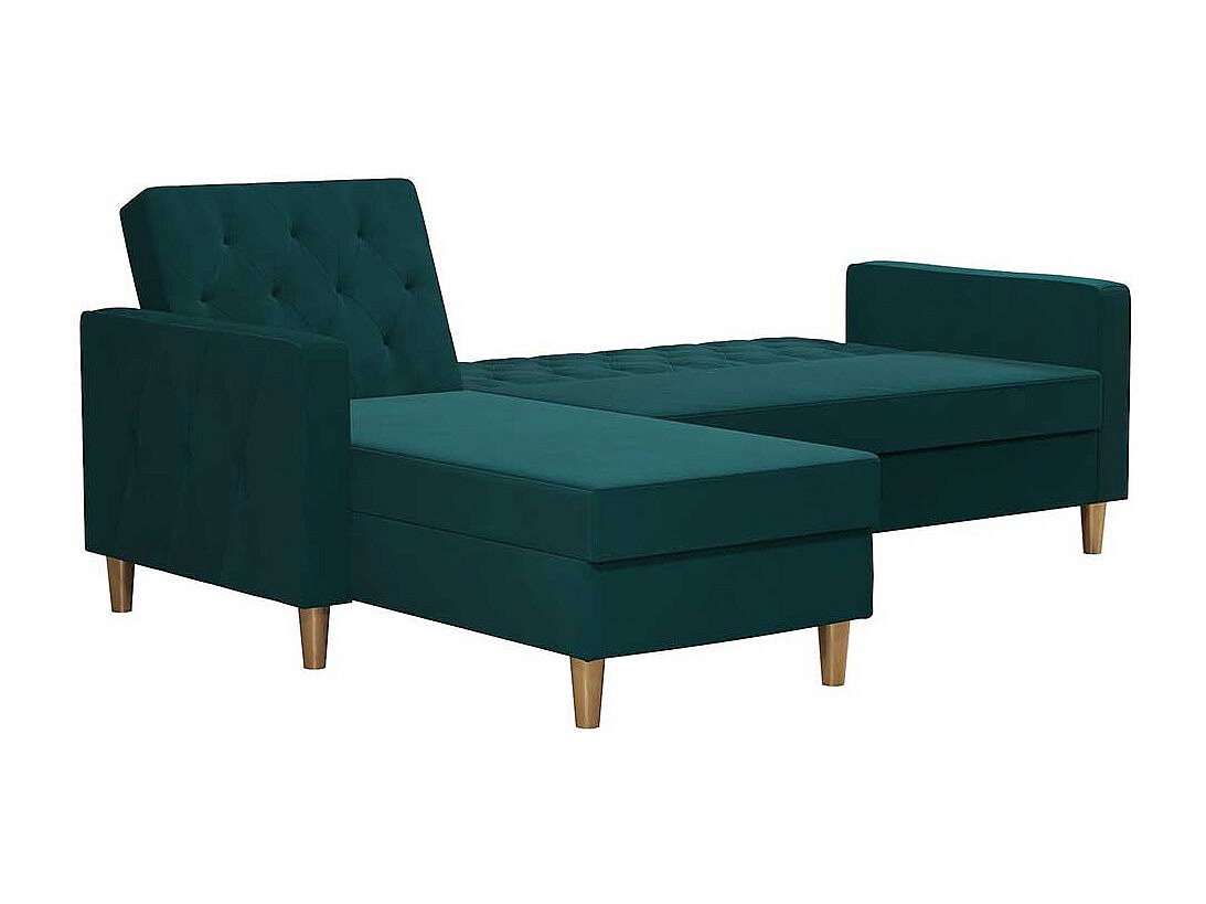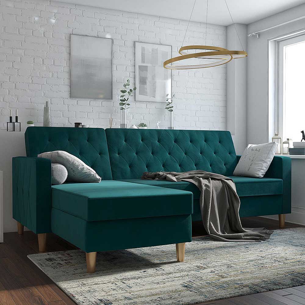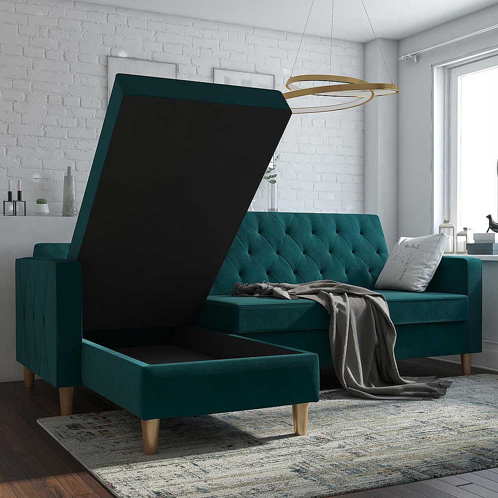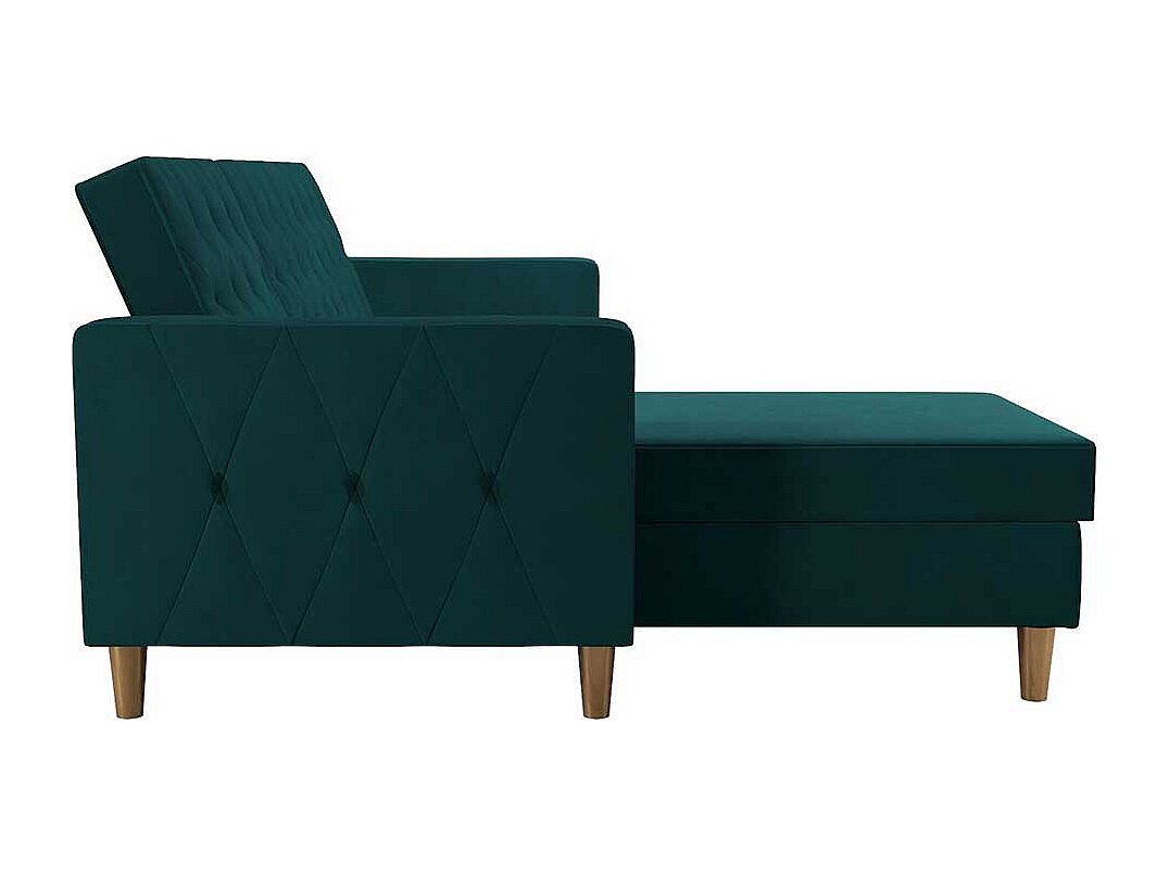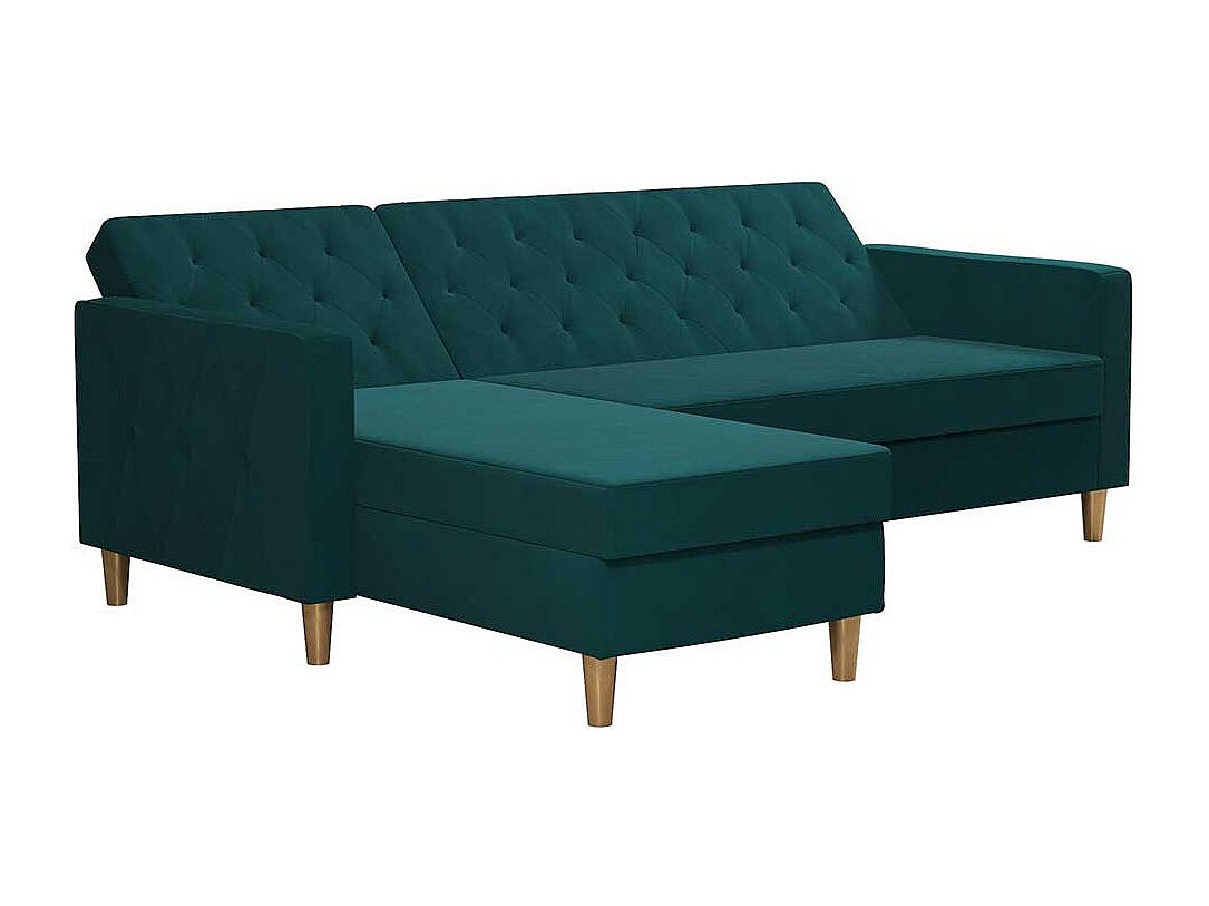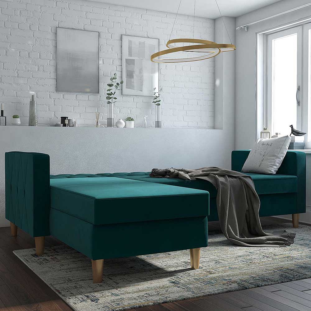 Bettsofa Ecke Petrol aus Samt Rücken Klappmechanik