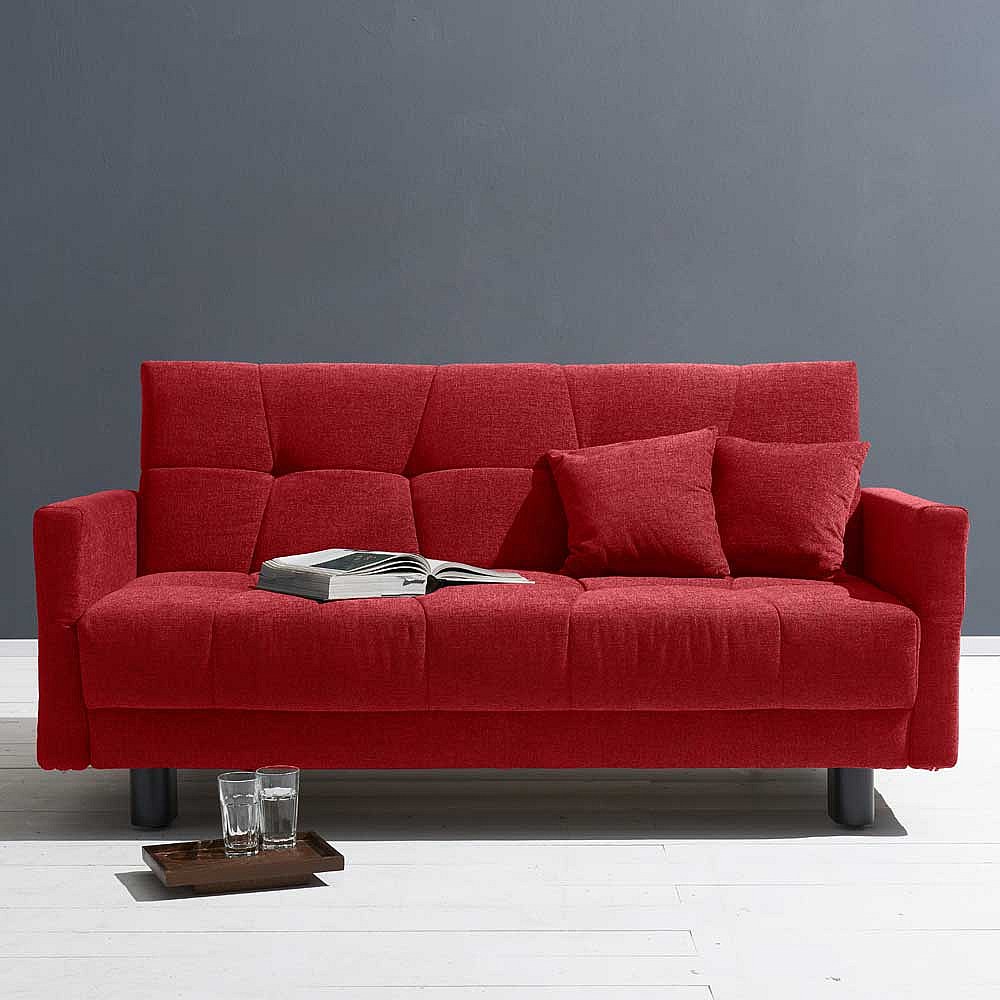 Bettsofa in Rot Flachgewebe verstellbaren Armlehnen