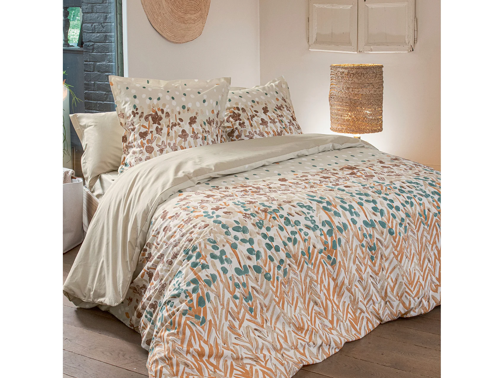 Bettwäsche aus Baumwolle mit stilisiertem Blumenmuster und Kissenbezügen