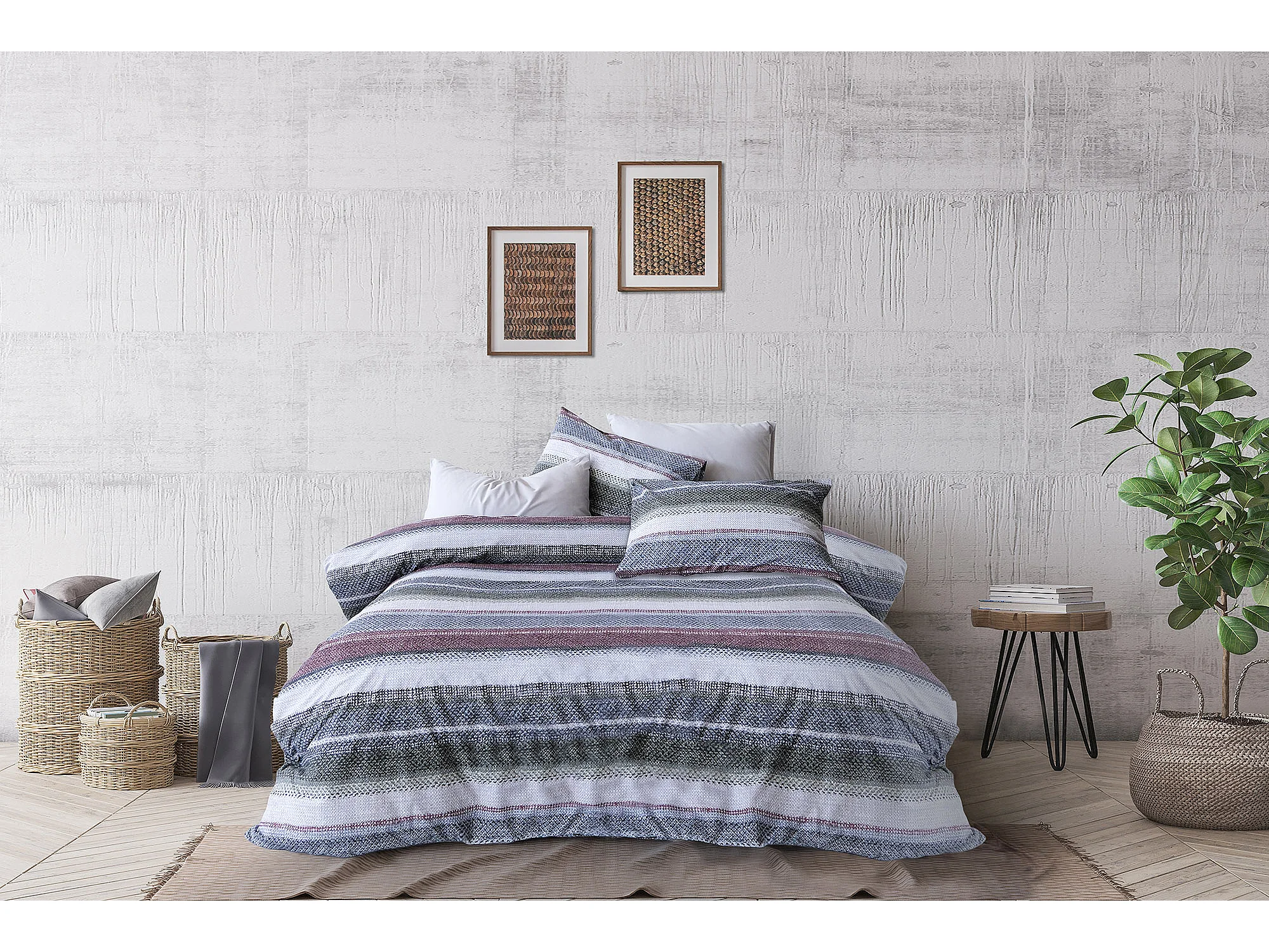 Bettwäschegarnitur 1 Bettbezug 240x220 cm+2 Kopfkissenbez 65x65 cm
