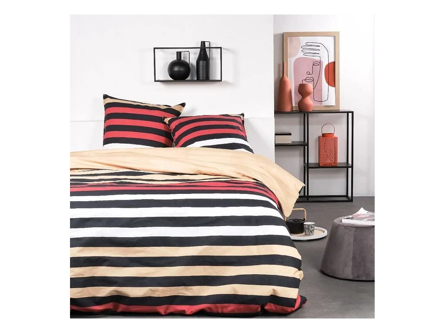 Bettwäscheset – 240 x 220 cm – gestreifte, bedruckte Baumwolle