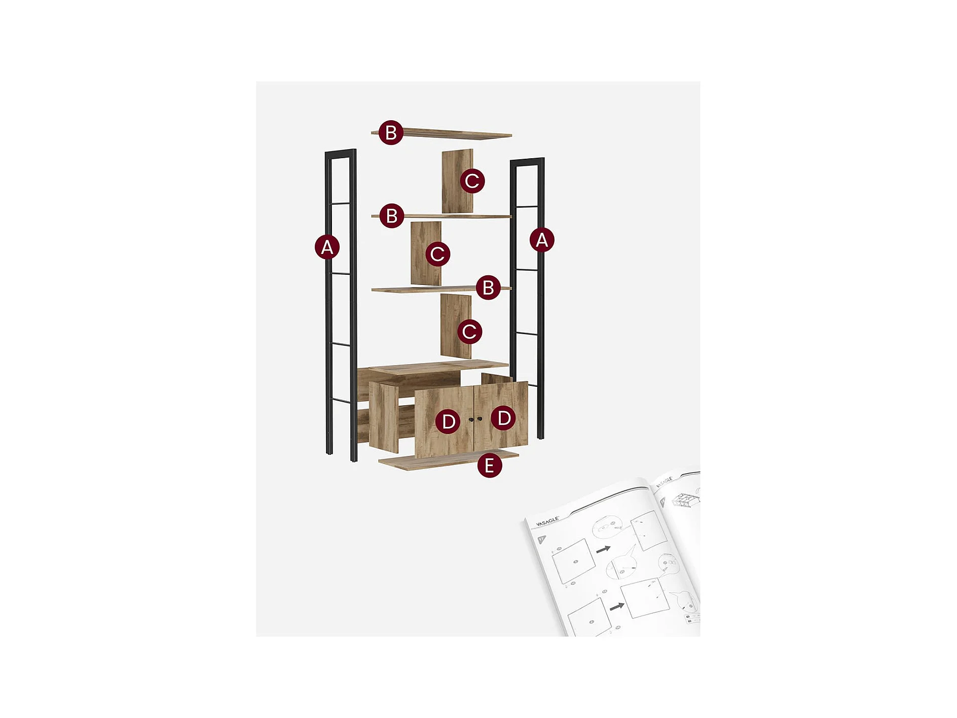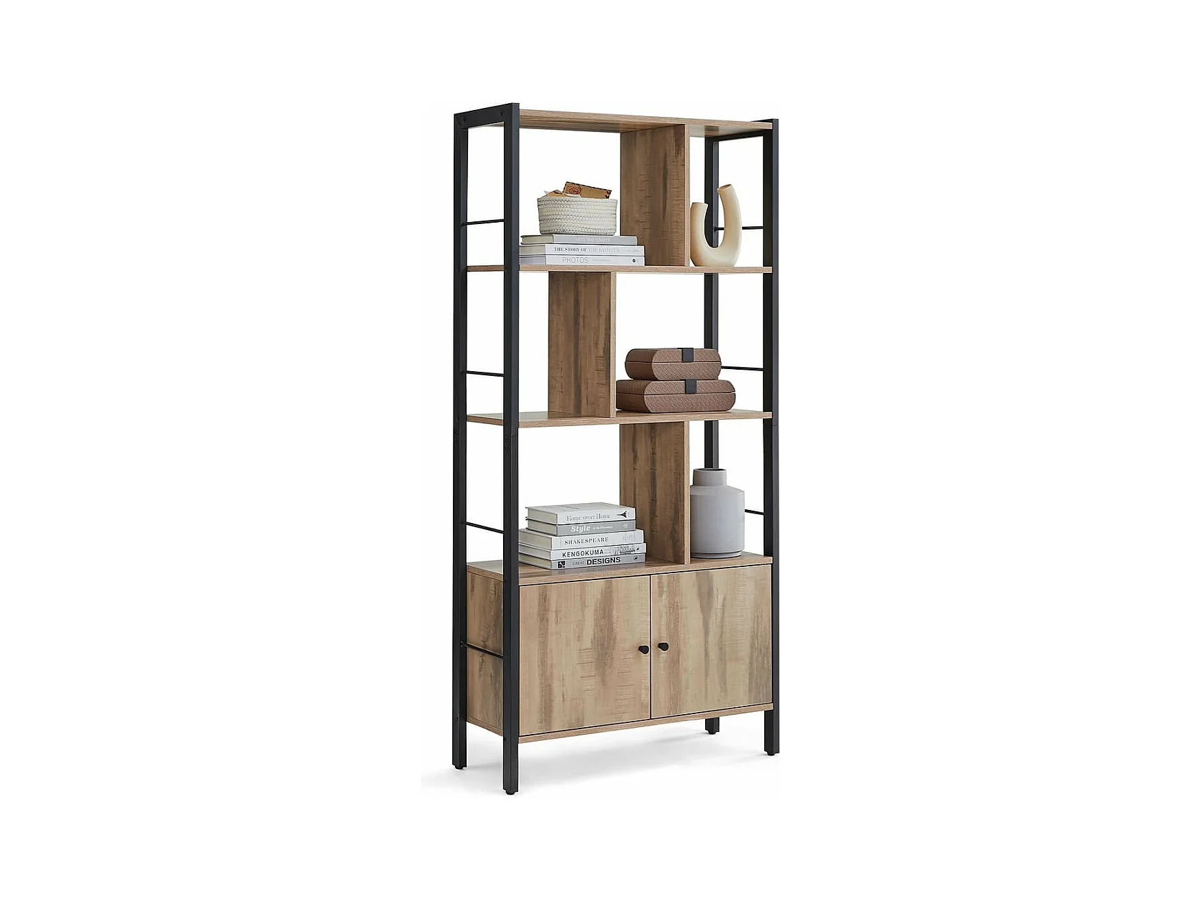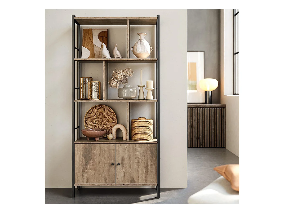 Bibliothek mit 6 Fächern und 2 Türen – L74 cm