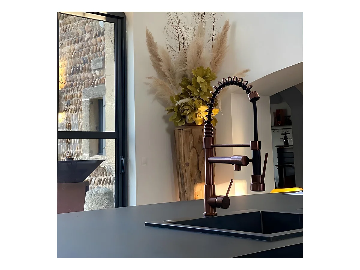 Big Pro Spültischarmatur mit Kupfer-Duscharmatur Essebagno