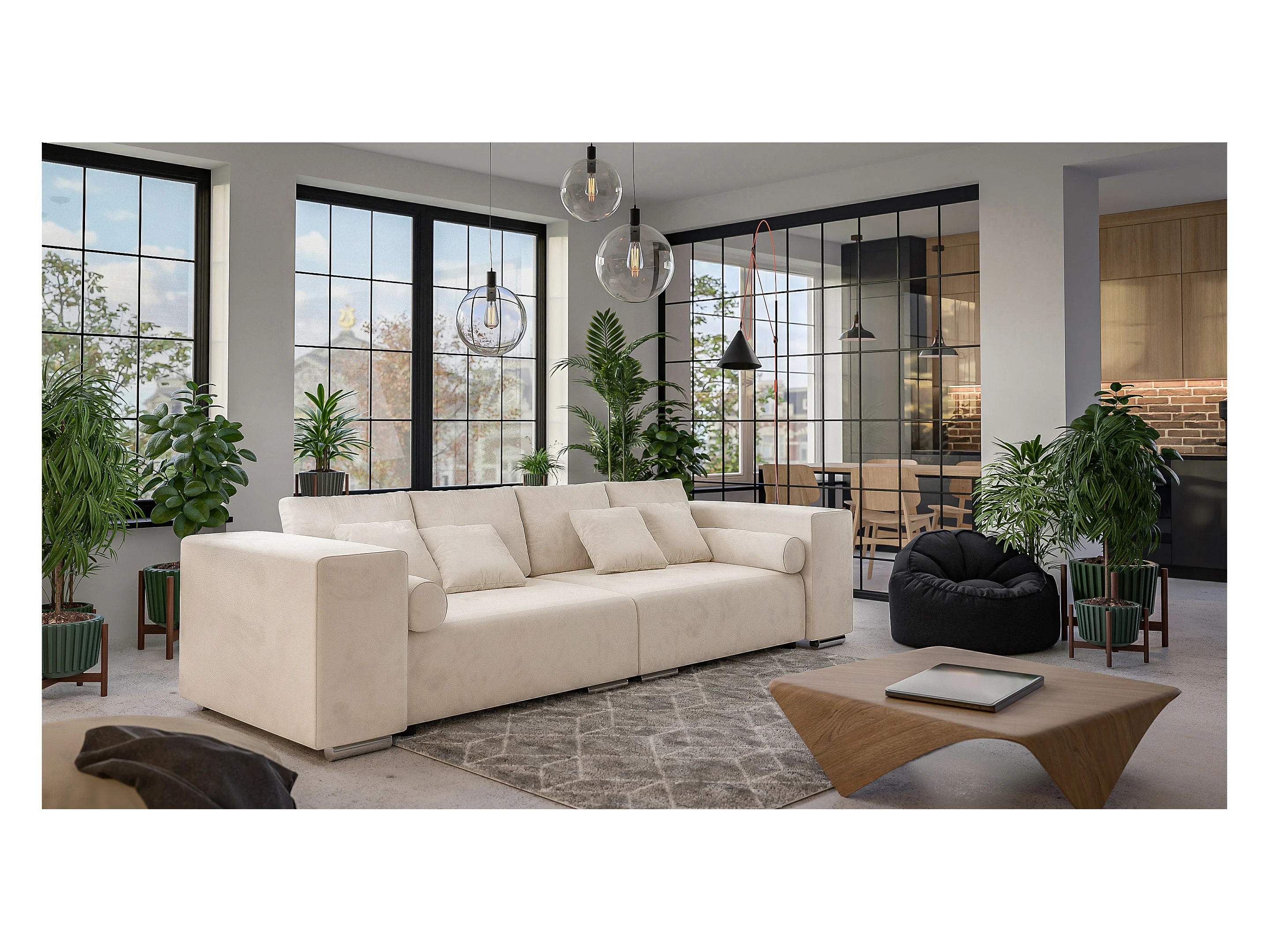 Big Sofa Ethan mit Schlaffunktion, Boxspringfederung, Lounge Sofa mit vielen losen Kissen