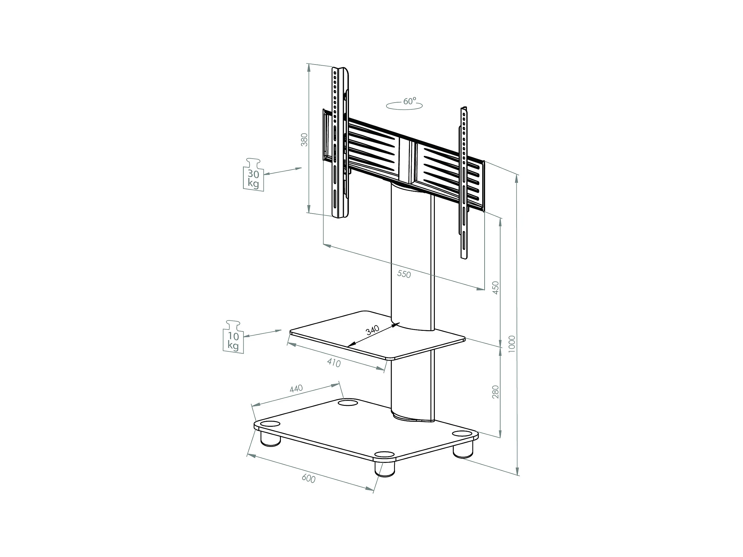 TV Standfuß Ständer Rack Alu Glas Rollen Blino ZW