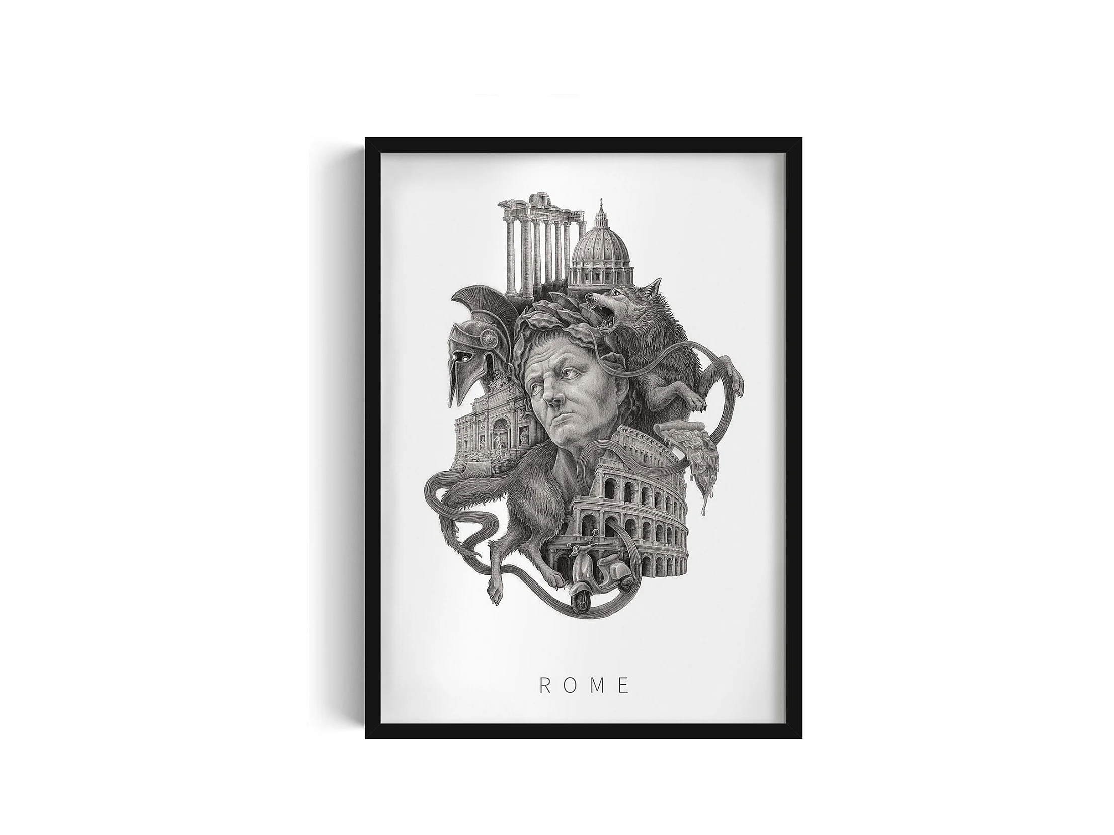 Bild im Rahmen, elegante italienische Dekoration, Rom-Kunst schwarzer Rahmen, Stadtbild von Rom, Rom-Design 50x70 cm.